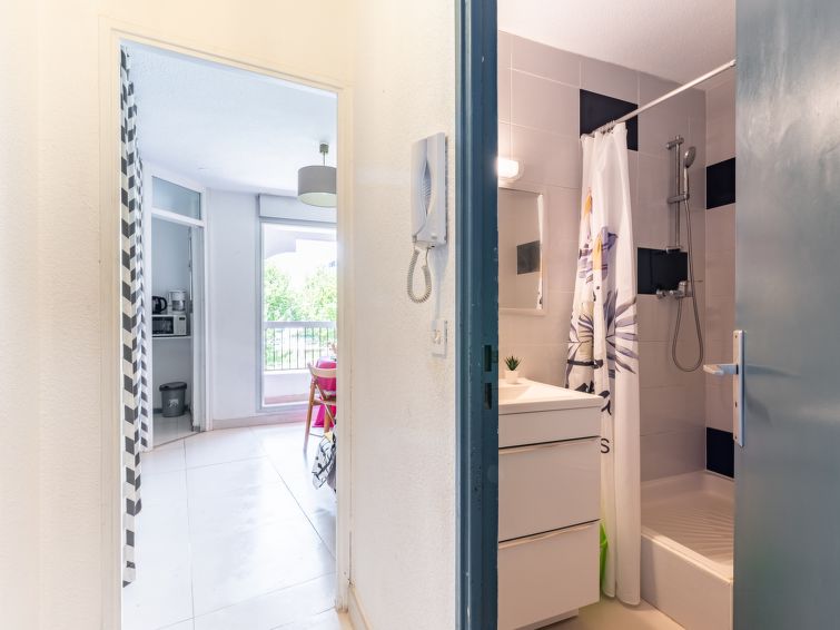 1 rom leilighet 20 m2 i 2nd etasje. Stue/spisestue med, 1 dobbel sovesoffa (140 cm, lengde 190 cm), TV (flatskjerms TV). Kjøkkenkrok (brødrister, vannkoker, mikrobølgeovn, elektrisk kaffemaskin). Dusj/WC. Liten terrasse 7 m2. Fasiliteter: Internett (trådløs LAN [WLAN], ekstra). Parkeringsplass. Vennligst merk: leilighet vend mot parkeringsplassen. Røykfri bolig. Røykvarsler. Tilbud fra en privatperson i henhold til art. 155, IV av CGI.