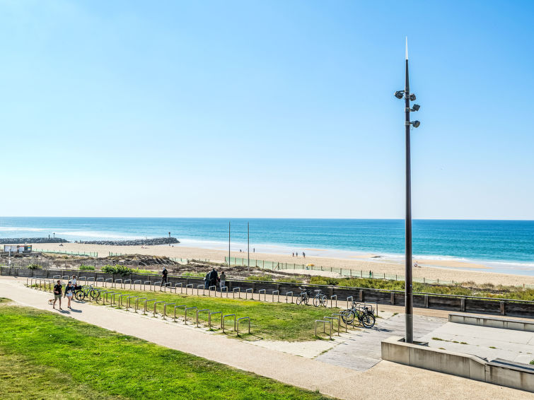 Residens "Les Hauts de la Corniche", med 3 etasjer. I en sentrale, travelt posisjon, i byens hjerte, 1 km fra skogskanten, 50 m fra sjøen, 10 km fra innsjø 50 m fra stranden. I huset: heis. Butikk, daglivarehandel 50 m, supermarked 500 m, restaurant 10 m, bakeri 50 m, område bare for gående 10 m, togstasjon "Labouheyre" 30 km, sandstrand "la garluche" 50 m, park "Landes Aventure" 6 km, innendørs pool 6 km, badevann "Aureilhan" 10 km. Golfbane(9 hull) 6 km, surfeskole 50 m, rideskole 10 km. Attraksjoner i nærheten: Aqualand Bassin Arcachon 70 km, Biscarrosse 40 km, Casino Mimizan Plage 1.5 km, Centre Nautique 10 km. Turstier Marquèze 40 km. On the ground floor of the building, there is a "Brasserie". Direct access to the pedestrian promenade, leading to the beach.