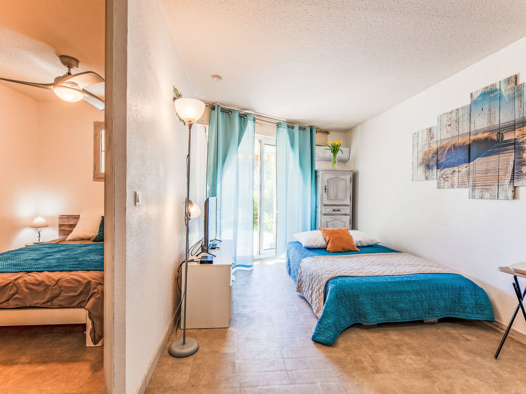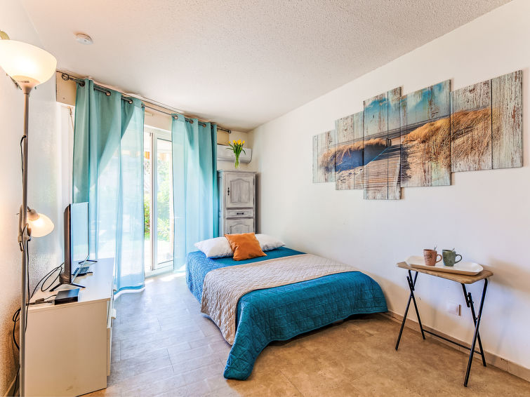 2 rom leilighet 30 m2, på bakkeplan. Enkelt og komfortabelt møbler: stue/spisestue med, 1 dobbel sovesoffa (140 cm, lengde 190 cm), spisebord og TV (flatskjerms TV), air-conditioning. Utgang til terrassen, til sitteplass i hagen. 1 litet rom med, 1 dobbeltseng (140 cm, lengde 190 cm). Kjøkkenkrok (oppvaskmaskin, 2 keramiske kokeplater, brødrister, vannkoker, elektrisk kaffemaskin, kombinert mikrobølgeovn). Dusj, sep. WC. El-oppvarming. Terrasse 10 m2, dekt, beliggenhet mot vest, sitteplass i hagen 15 m2. Terrassemøbler. Utsikt av hagen. Fasiliteter: vaskemaskin. Internett (trådløs LAN [WLAN], gratis). Parkeringsplass plass nr G5. Vennligst merk: røykfri bolig. Max kjæledyr / hund tillatt 1 kjæledyr / hund tillatt. Røykvarsler. 83107000341GG