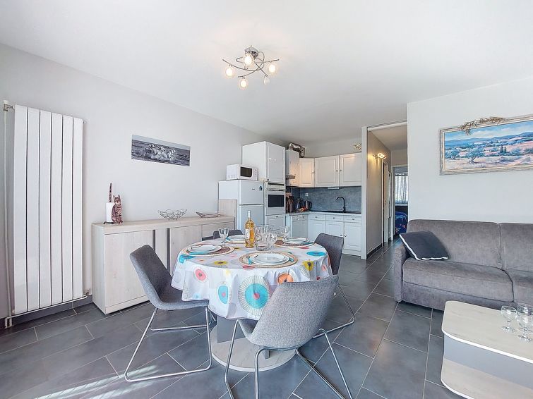 Residens "Les Marinas de la Plage I", med 2 etasjer. I området la Plage Sud, 100 m fra sjøen, 100 m fra stranden. Parkering. Butikk, daglivarehandel 300 m, supermarked 2 km, kjøpesenter, restaurant 300 m, togstasjon 3.5 km, sandstrand 100 m, utendørs svømmebasseng 4.9 km, termalbad "Thalazur Les Bains de Camargue" 500 m. Minigolf 3.5 km, rideskole 5 km. Attraksjoner i nærheten: Casino Flamingo 3.6 km, Seaquarium 4.7 km, Aigues-Mortes 10 m, La Grande Motte 13 km, Nîmes 50 km. Turstier Réserve Naturelle de Camargue. Vennligst merk: bil anbefales. Flyplass 24 km av hbrukt. Thalassotherapy centre 300 m.