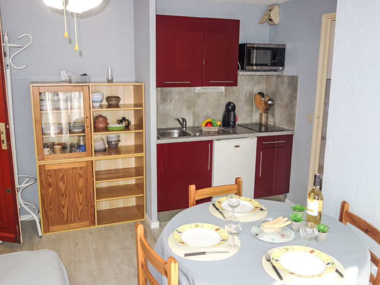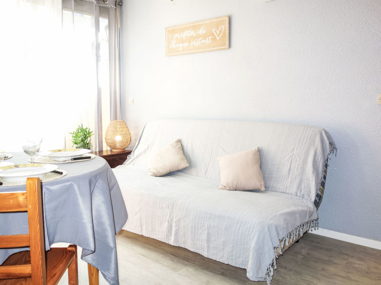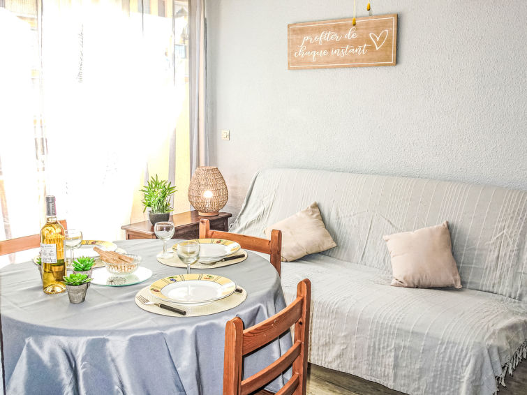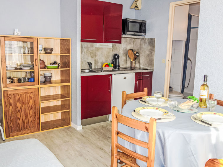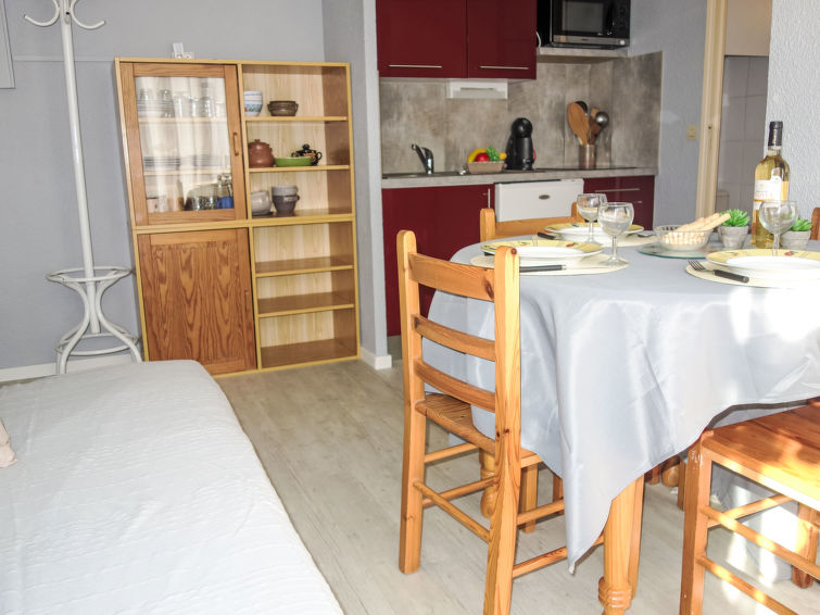 Residens "Les Mas de La Mer", med 2 etasjer. 400 m fra sjøen, 400 m fra stranden, ved en hovedvei. Parkering. Butikk 700 m, supermarked 200 m, restaurant, bakeri 700 m, togstasjon "Elne" 8.6 km, sandstrand "Plage Nord" 400 m. Sporthavn 2 km, golfbane(27 hull) 2 km, seileskole 3.5 km, minigolf 500 m, rideskole 3 km, idrettsenter 4 km. Attraksjoner i nærheten: Aqualand 6 km. Vennligst merk: Det er flere lignende leiligheter i samme hus.