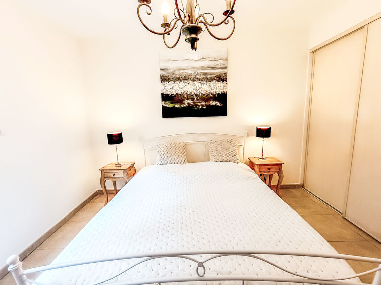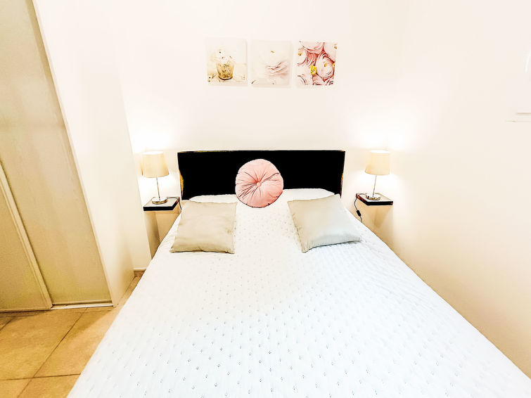 3 rom leilighet 65 m2, på bakkeplan. Komfortabelt og moderne møbler: stue/spisestue med, TV, flatskjerms TV og air-conditioning. Utgang til terrassen. 1 rom med, 1 dobbeltseng (160 cm, lengde 200 cm), air-conditioning. 1 litet rom med 1 seng (140 cm lengde 200 cm). Åpent kjøkken (stekeovn, oppvaskmaskin, 4 keramiske kokeplater, brødrister, vannkoker, mikrobølgeovn, elektrisk kaffemaskin). Bad, sep. WC. Terrasse 9 m2, beliggenhet mot sør og, østvendt beliggenhet. Terrassemøbler. God utsikt av havet. Fasiliteter: vaskemaskin, strykejern. Internett (trådløs LAN [WLAN], gratis). Garasje plass nr 10, høyde 200 cm, bredde 230 cm. Vennligst merk: røykvarsler. Tilbud fra en privatperson i henhold til art. 155, IV av CGI.