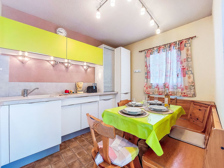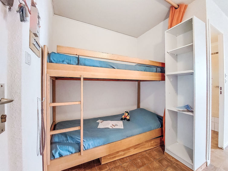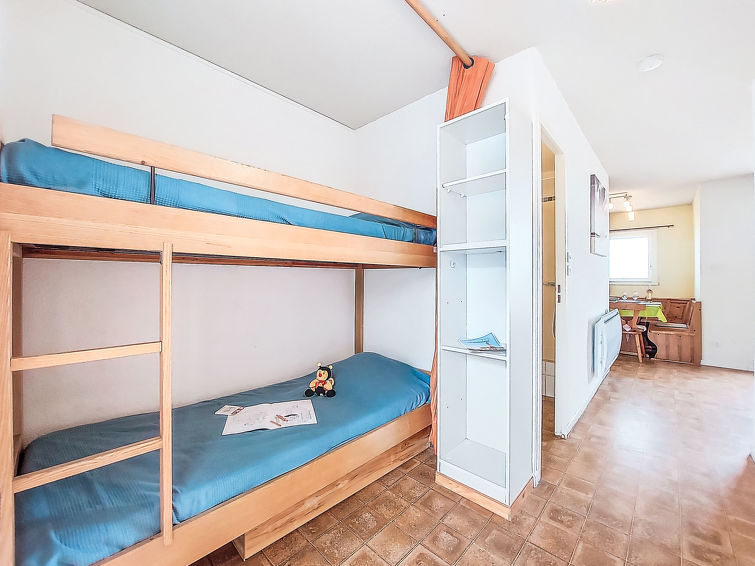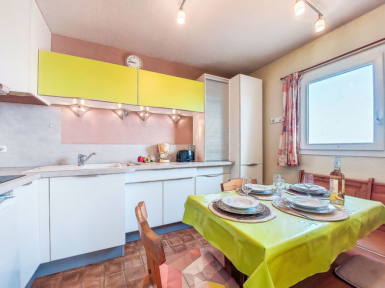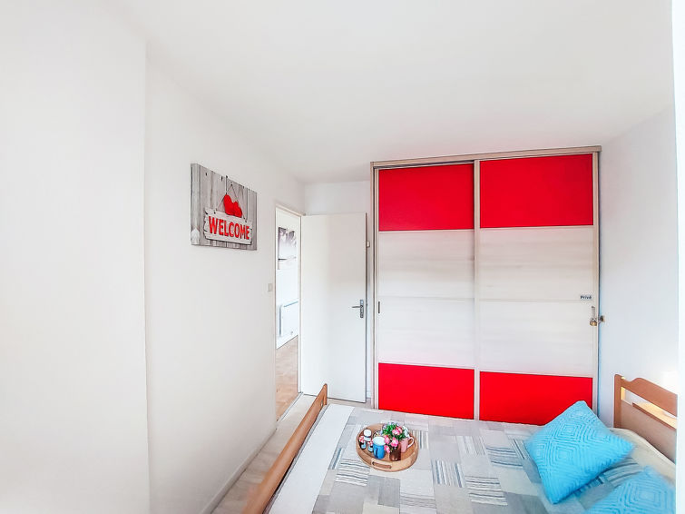 2 rom leilighet 30 m2 i 4th etasje. Stue/spisestue med, TV. 1 rom med, 1 dobbeltseng (140 cm, lengde 190 cm). Inngang med, 1 x 2 køysenger (80 cm, lengde 185 cm). Kjøkkenkrok (3 keramiske kokeplater, kombinert mikrobølgeovn). Dusj/WC. Terrasse 4 m2, østvendt beliggenhet. Terrassemøbler. Fasiliteter: Internett (trådløs LAN [WLAN], ekstra). Parkeringsplass. Vennligst merk: parkeringsplass bare for små biler. Max kjæledyr / hund tillatt 1 kjæledyr / hund tillatt. Røykvarsler.