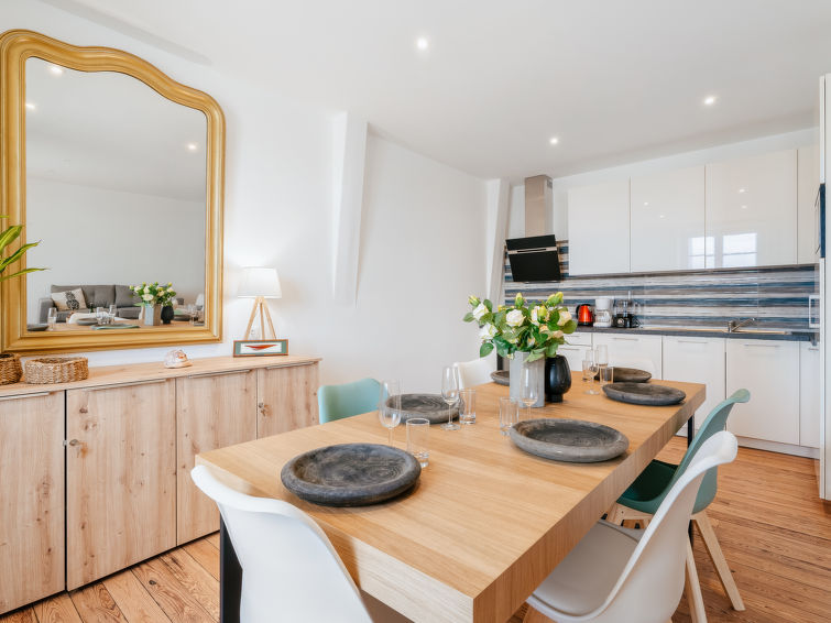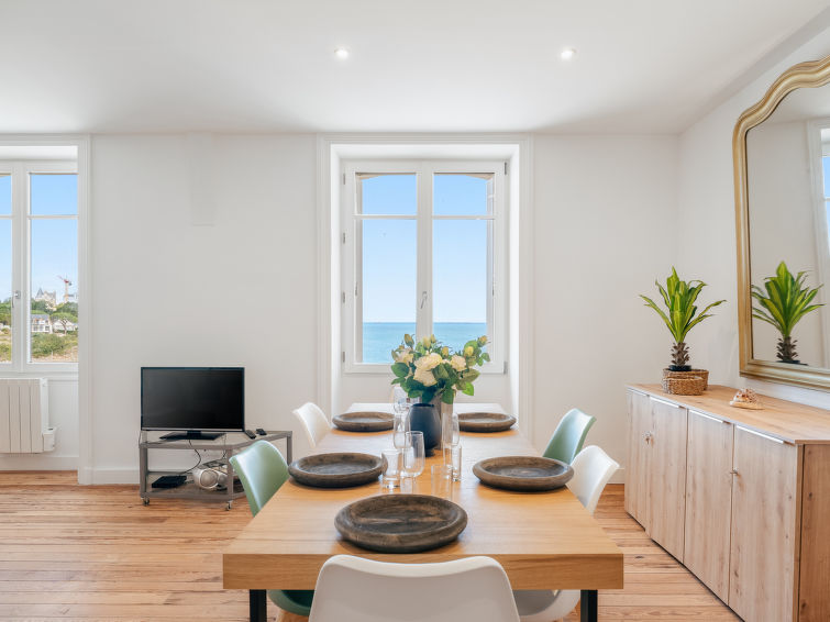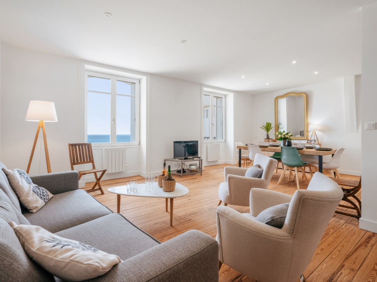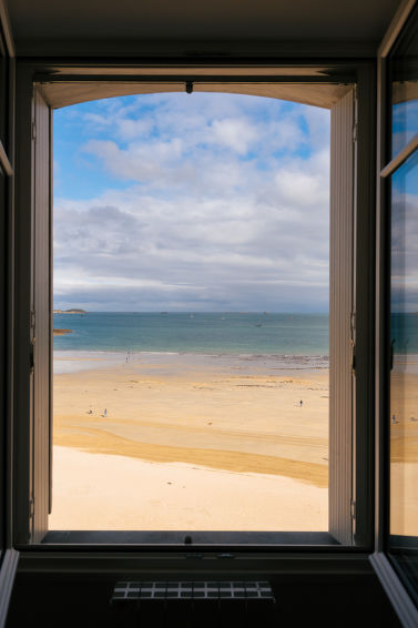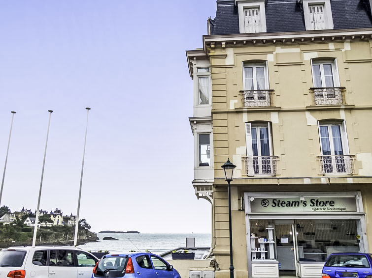 Residens "Les Terrasses". I området L'Ecluse, i sentrum, 30 m fra sjøen, direkte tilgang til stranden. I anlegget: heis. Offentlig parkering på veien. Butikk 300 m, supermarked 450 m, kjøpesenter 7 km, restaurant, bar 100 m, togstasjon "Gare SNCF Saint Malo" 12 km, sandstrand "L'Ecluse" 30 m, svømmehall 50 m, rmalbad "Thalasso de Dinard" 2.1 km. Golfbane(18 hull) 7 km, tennis 1.5 km, rideskole 1.5 km. Attraksjoner i nærheten: Saint Malo et ses remparts 12 km, Le Grand Aquarium de Saint Malo 8 km, Cancale et ses huîtres 22 km, Cap Fréhel et Fort La Latte 35 km, Mont Saint Michel 60 km.