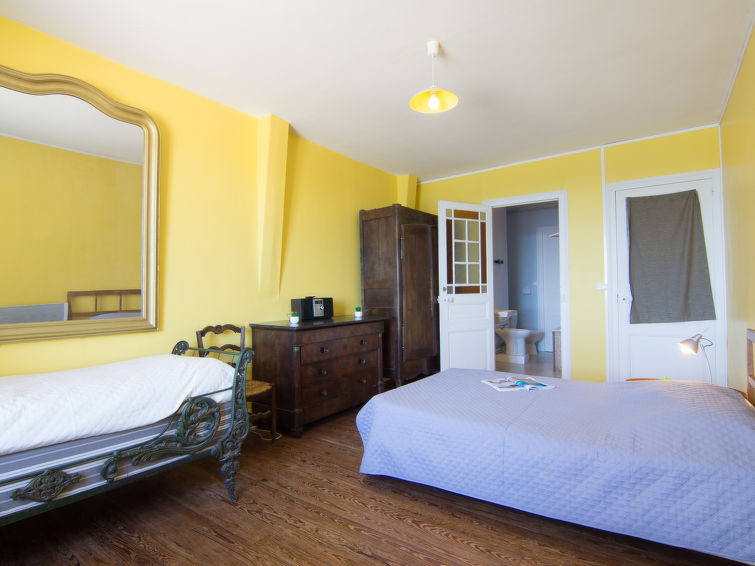 3 rom leilighet 64 m2 i 3rd etasje. Antikt møbler: stue/spisestue med, TV. 1 rom med 1 seng (90 cm lengde 190 cm), 1 dobbeltseng (1 x 140 cm, lengde 190 cm). 1 rom med 1 seng (90 cm lengde 190 cm). Lite kjøkken (4 kokeplater, ovn, mikrobølgeovn, elektrisk kaffemaskin). Bad/WC. El-oppvarming. Utsikt av havet. Fasiliteter: vaskemaskin. Internett (trådløs LAN [WLAN], gratis). Vennligst merk: røykfri leilighet. Røykvarsler.