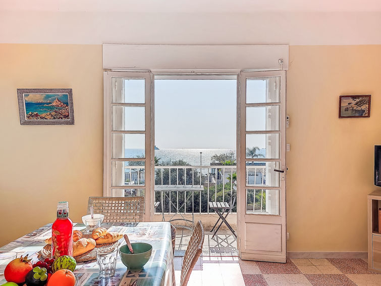3 rom leilighet 65 m2 i 2nd etasje, beliggenhet mot sør. Stue/spisestue med, TV og air-conditioning. Utgang til terrassen, beliggenhet mot sør. 1 rom med 2 senger (90 cm lengde 190 cm). Utgang til balkongen, beliggenhet mot nord. 1 rom med 2 senger (90 cm lengde 190 cm). Kjøkken (miniovn, 3 induksjonskomfyr, brødrister, vannkoker, mikrobølgeovn, frys, elektrisk kaffemaskin). Utgang til terrassen. Bad, sep. WC. El-oppvarming. Liten balkong 5 m2, beliggenhet mot nord, terrasse 10 m2, beliggenhet mot sør. Terrassemøbler. Hærlig panoramautsikt av havet. Fasiliteter: vaskemaskin. Internett (trådløs LAN [WLAN], ekstra). Parkeringsplass ved hbrukt. Vennligst merk: max 1 lite kjæledyr / liten hund tillatt. Bare TV FR. Røykvarsler. 83112000238JX