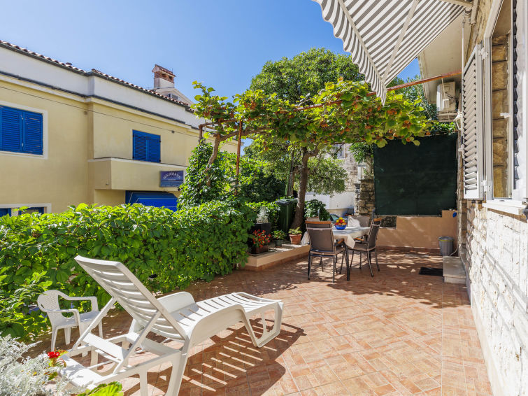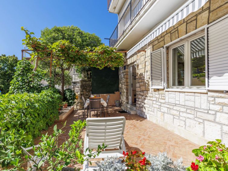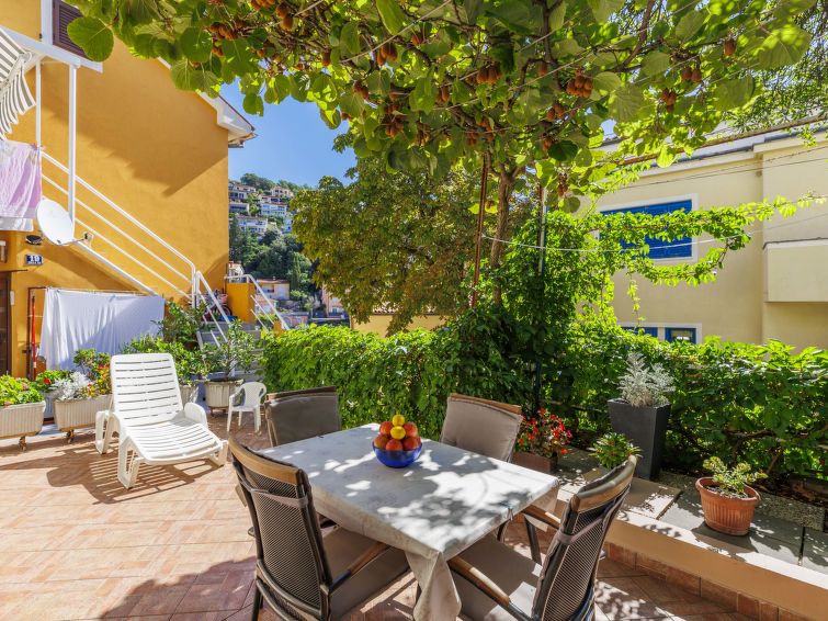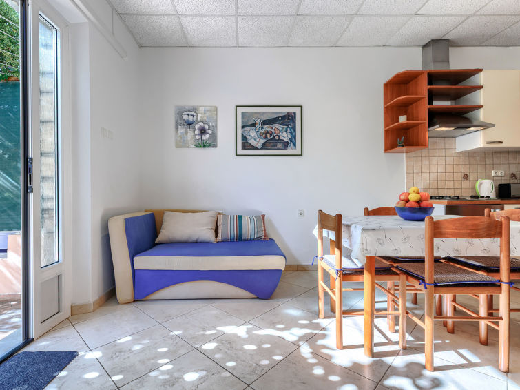 "Lidija (RAC155)", 3 rom leilighet 38 m2, på bakkeplan. Passer for 4 voksne. Praktiskt møbler: stue/spisestue med, spisebord, satelit-TV og air-conditioning. Utgang til terrassen. 1 rom med, 1 dobbeltseng. 1 rom med, 1 dobbeltseng. Åpent kjøkken (4 kokeplater, stekeovn, frys, elektrisk kaffemaskin). Dusj/WC. El-oppvarming. Terrasse 25 m2. Terrassemøbler, grill (flyttbar), liggestoler (2). Utsikt av havet. Vennligst merk: røykfri bolig.