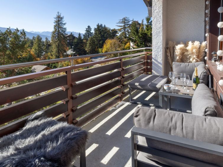 Koselig, komfortabel residens "Lisière-Sud". Nedenfor Montana, i området La Combaz, i utkanten, 1.7 km fra sentrum, 1.2 km fra skiområdet, ved en hovedvei, beliggenhet mot sør. I anlegget: heis, skirom, sentralvarme, vaskemaskin, tørketrommel (for felles bruk ekstra). Parkering (begrenset antall plasser) ved hbrukt. Butikk 1.6 km, supermarked 1.7 km, restaurant 1.6 km, bussholdeplass "Comba" 50 m. Golfbane(18 hull) 3.4 km, skisportenanlegg 1.2 km, skøytebane 1.8 km. Velkjente innsjøer: Lac Grenon 2.3 km. Vennligst merk: gratis skibuss.