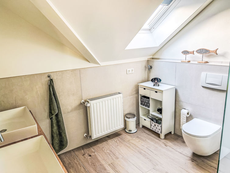 "Lona", 3 rom leilighet 130 m2 i 1st etasje. Delvis, med skråtak, smakfullt møbler: stue/spisestue 35 m2 med, satelit-TV (flatskjerms TV). Utgang til balkongen. 1 rom 34 m2 med, 1 dobbeltseng (180 cm, lengde 200 cm), satelit-TV (flatskjerms TV). 1 rom 19 m2 med 2 senger (90 cm lengde 200 cm). Kjøkken 12 m2 (stekeovn, oppvaskmaskin, 4 keramiske kokeplater, mikrobølgeovn, elektrisk kaffemaskin) med, spisehjørne. Dusj/WC, dobbel servant. Balkong 15 m2, sitteplass i hagen. Balkongmøbler. Fasiliteter: hårføner. Internett (trådløs LAN [WLAN], gratis). Vennligst merk: røykfri bolig. Røykvarsler.