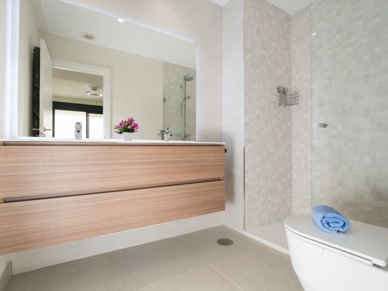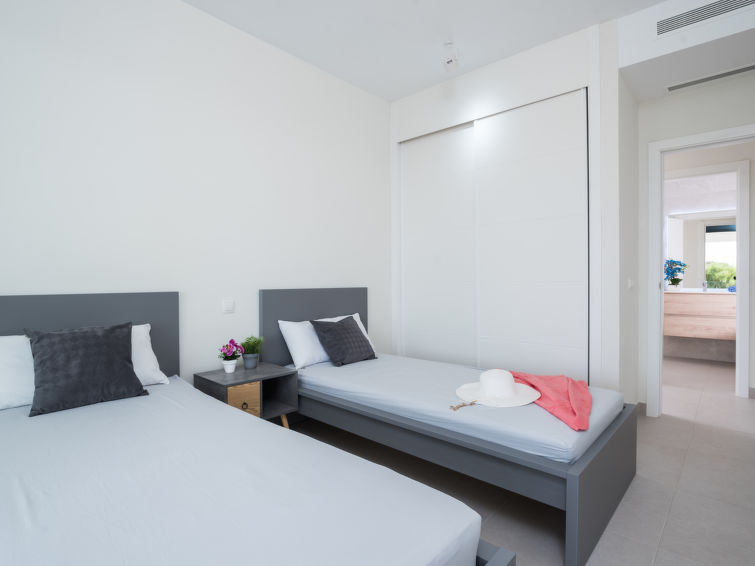 "Mañanas Felices 3", 3 rom leilighet 85 m2 i 1st etasje, beliggenhet mot sør-øst. Passer for 4 voksne. Romlig og lys, moderne møbler: stue/spisestue med, digital TV, radio, elektrisk oppvarming, air-conditioning og varmluft oppvarming. Utgang til terrassen. 1 rom med 2 senger (90 cm lengde 190 cm), dusj/WC, air-conditioning, varmluft oppvarming og motoriserte persienner. 1 rom med 1 seng (180 cm lengde 200 cm), air-conditioning, varmluft oppvarming og motoriserte persienner. Utgang til sitteplass i hagen, beliggenhet mot sør. Åpent kjøkken (stekeovn, oppvaskmaskin, 3 keramiske kokeplater, brødrister, vannkoker, mikrobølgeovn, frys, elektrisk kaffemaskin) med, air-conditioning og varmluft oppvarming. Utgang til sitteplass i hagen. Dusj/WC. Naturstengulv. Terrasse 30 m2, 27 m2. Fasiliteter: vaskemaskin, strykejern, høy barnestol barneseng for barn opp til 2 år, hårføner. Internett (trådløs LAN [WLAN], gratis). Garasje plass nr 07. Vennligst merk: velegnet for familier. Røykfri bolig. R0000000001