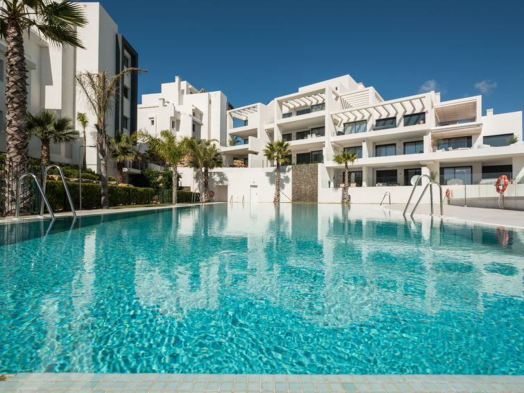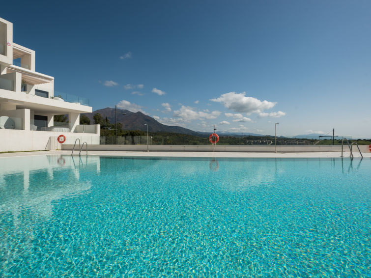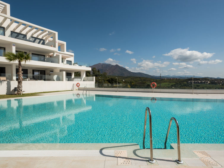 Meget stor, moderne leilighetshus "Mañanas Felices 3", med 3 etasjer, bygget i 2021. 7 km fra sentrum av Estepona, 2.5 km fra sjøen, 2.5 km fra stranden, 500 m av lagunen, beliggenhet sør-øst. Fellesbruk: 1 badebasseng (dybde 70- 180 cm dyp, Sesongåpent: 01.Mai. - 31.Sep. bassengets åpningstider: 10:00-20:00). Formet basseng. Dusj/WC ved bassenget. I anlegget: treningsrom, heis, vaskemaskin. Felles garasje nr 07. Supermarked 2.5 km, restaurant 2.5 km. Sporthavn 6 km, golfbane(18 hull) 400 m, idrettsenter 6 km. Attraksjoner i nærheten: Estepona Old towm 9 km, Marbella Old town 38 km, Sotogrande Marina and Leisure Port 20 km, Estepona Marina and Leisure port 6 km. Vennligst merk: bil anbefales. Passer for 4 voksne. Eieren godtar ingen grupper. Eieren godtar ikke noen ungdomsgrupper. Flyplass 88 km av hbrukt. Stille og rolig område. Stillhet og god oppførsel.