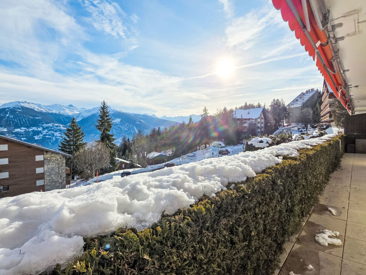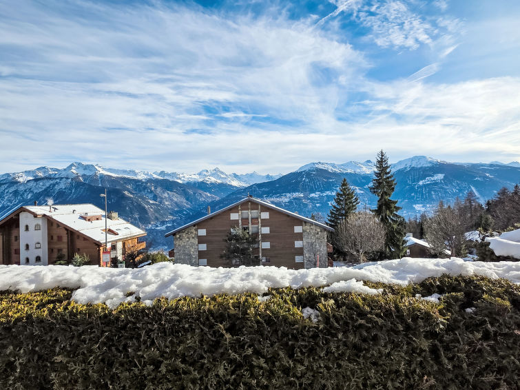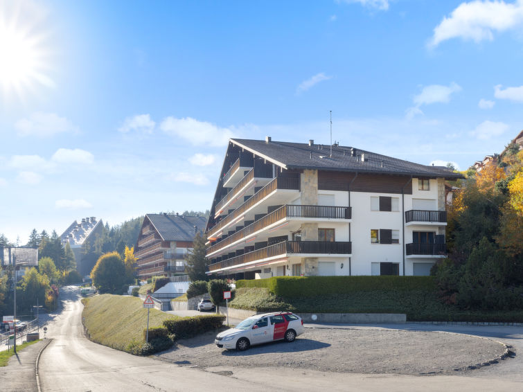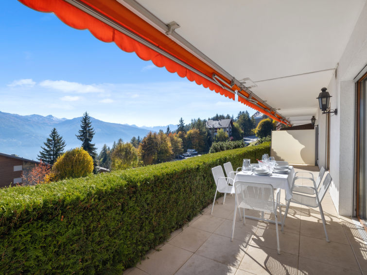 Residens "Marigny Dent-Blanche". I området Marigny, i utkanten, 1.5 km fra sentrum av Montana, i en roligt, solrikt posisjon, beliggenhet mot sør. Privat: hage (uten gjerde) med plen. I anlegget: heis, skirom, sentralvarme, vaskemaskin (ekstra), tørketrommel (for felles bruk), tørkerom. Parkering (begrenset antall plasser). Butikk 1.5 km, supermarked 1.6 km, restaurant 1.5 km, bakeri 900 m, bussholdeplass "Marigny" 20 m. Golfbane(18 hull) 3 km, skisportenanlegg 1.4 km, skøytebane 2 km. Velkjente innsjøer: Lac de La Moubra 1.3 km, Lac Grenon 2 km, Etang Long 2.6 km. Vennligst merk: gratis skibuss.