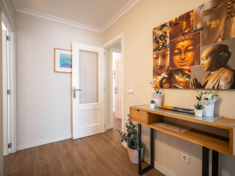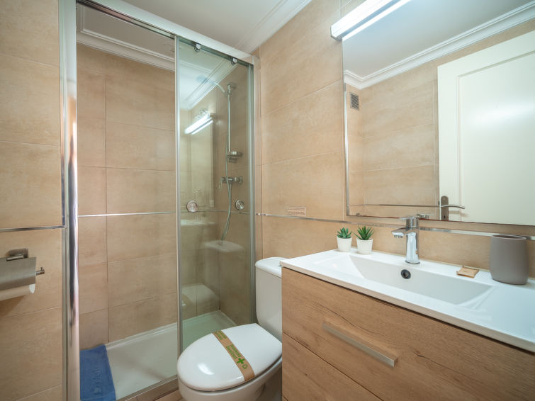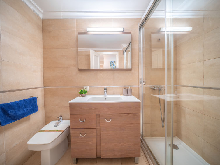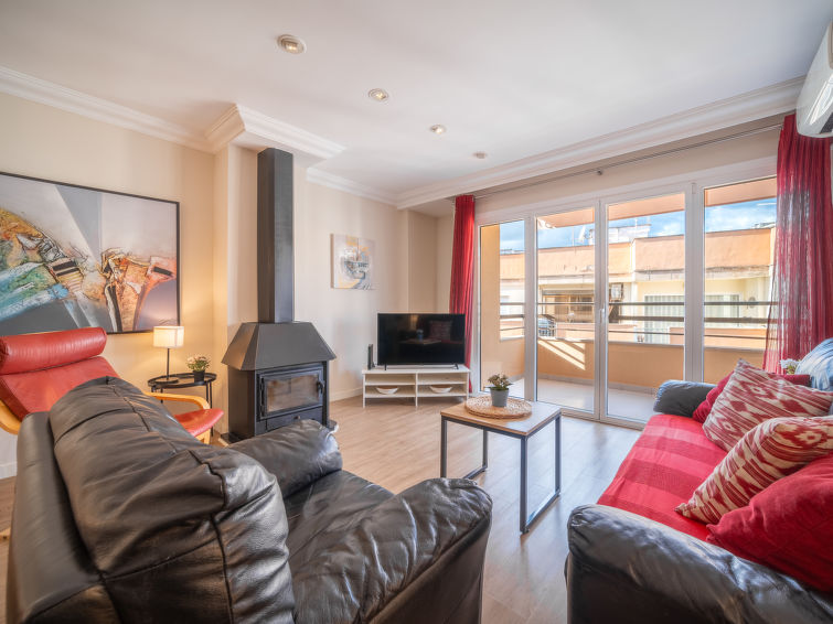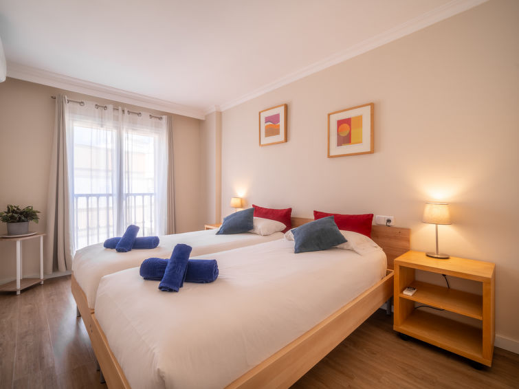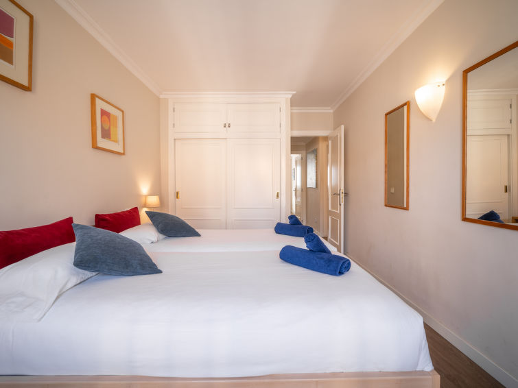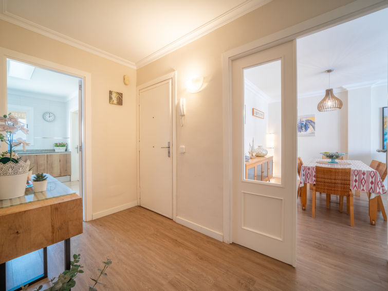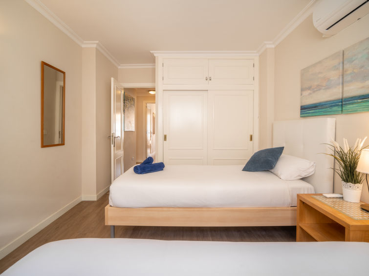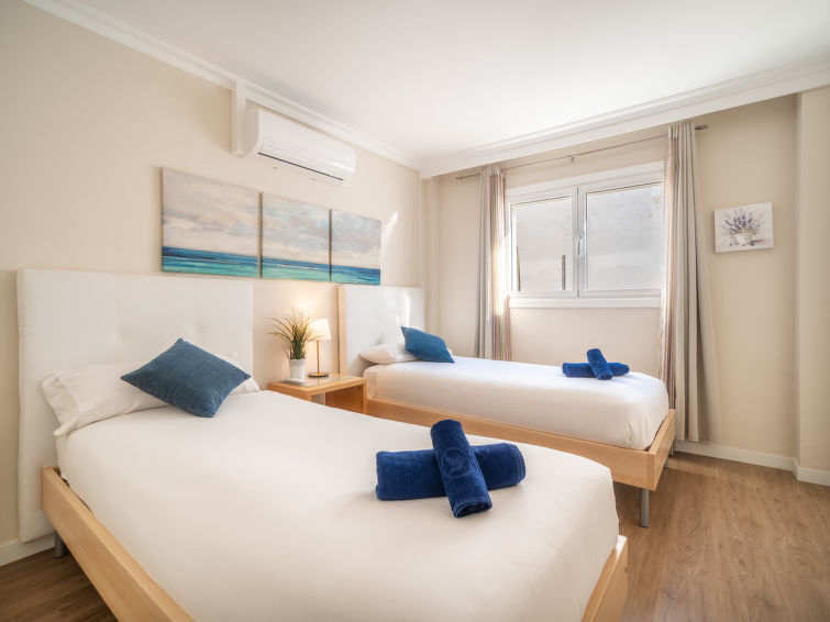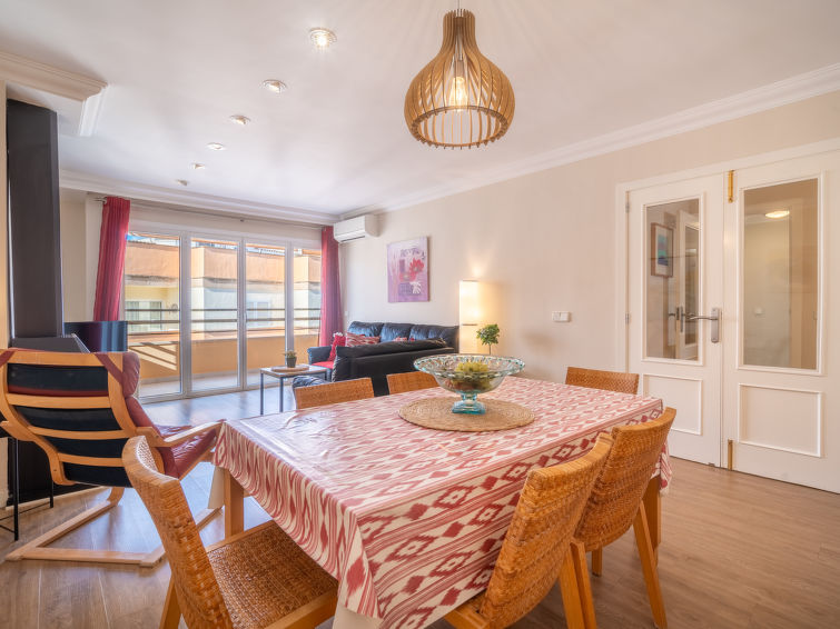 "Mariners 4", 4 rom leilighet 110 m2 i 4th etasje. Romlig og lys, komfortabelt og koseligt møbler: stue/spisestue med, åpen peis, spisebord, digital TV og flatskjerms TV. 1 rom med, 1 dobbeltseng (150 cm, lengde 200 cm). Utgang til balkongen. 2 rom, hvert rom med 2 senger (90 cm). Stort kjøkken (stekeovn, oppvaskmaskin, 3 keramiske kokeplater, mikrobølgeovn, frys, elektrisk kaffemaskin). 2 dusjer/WC. Airconditioning, varmluftsoppvarming. Balkong 10 m2. Balkongmøbler. Delvis utsikt av havet. Fasiliteter: vaskemaskin, strykejern, høy barnestol barneseng for barn opp til 2 år, hårføner. Internett (trådløs LAN [WLAN], gratis). ETVPL12598
