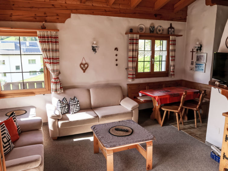 "Muotta Sulegl, Wohnung Nr. 4 (LAA148)", 3 rom leilighet 60 m2 på 2 etasjer i 1st etasje, beliggenhet mot sør. Passer for 4 voksne + 1 barn. Rustikt og koseligt møbler: stue/spisestue med, åpen peis, spisehjørne og satelit-TV (flatskjerms TV), radio. Utgang til balkongen. 1 dobblet rom. Åpent kjøkken (3 kokeplater, stekeovn, oppvaskmaskin, brødrister, vannkoker). Dusj/WC. øverste etasje: (bratt trapp), 1 rom med skråtak med 2 senger og 1 sovemulighet. Varmekabler i gulvet. Balkong 15 m2, beliggenhet mot sør. Balkongmøbler. Vakker panoramautsikt av fjellene, dalen og landskapet. Parkeringsplass ved hbrukt. Vennligst merk: røykfri bolig.