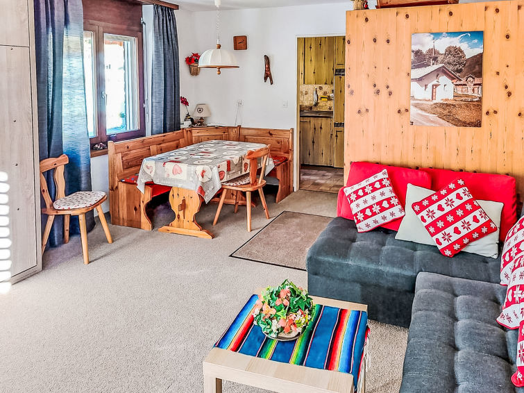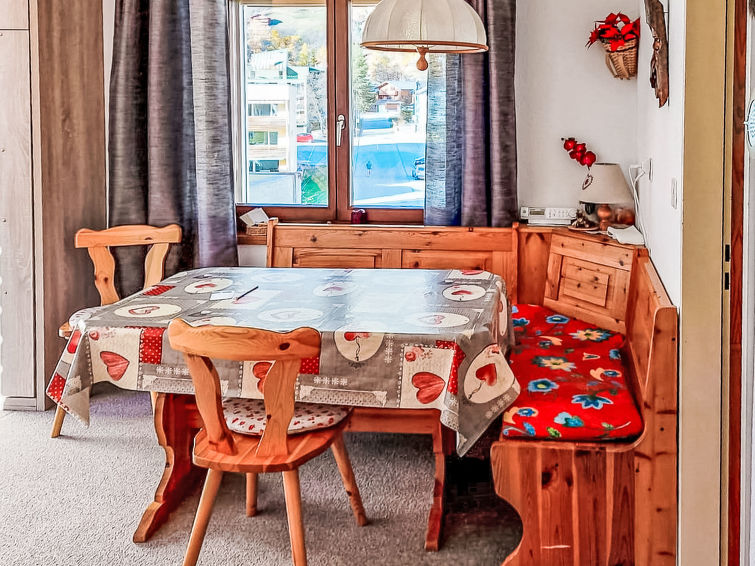2 rom leilighet 65 m2 i 3rd etasje. Praktiskt og koseligt møbler: stue/spisestue med, 1 nedfellbar dobbel skapseng (140 cm, lengde 190 cm), spisebord og kabel-TV (flatskjerms TV), stereoanlegg. Utgang til balkongen, beliggenhet mot sør. 1 rom med, 2 skapsenger. Kjøkken (4 kokeplater, stekeovn, mikrobølgeovn, elektrisk kaffemaskin). Bad/WC. Balkongmøbler, liggestoler (2). Meget vakker utsikt av fjellene og området. Fasiliteter: barneseng for barn opp til 2 år. Internett (trådløs LAN [WLAN], gratis). Parkeringsplass plass nr 10 (overdekt). Vennligst merk: røykfri bolig.