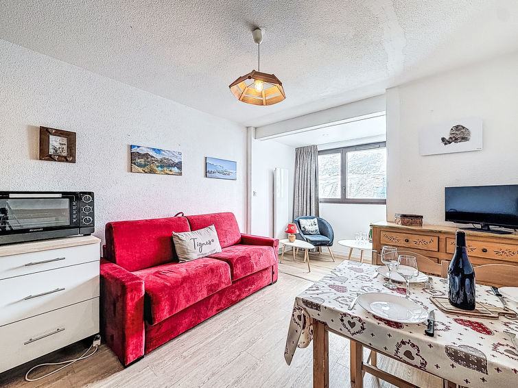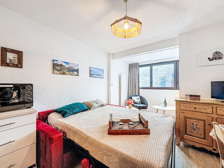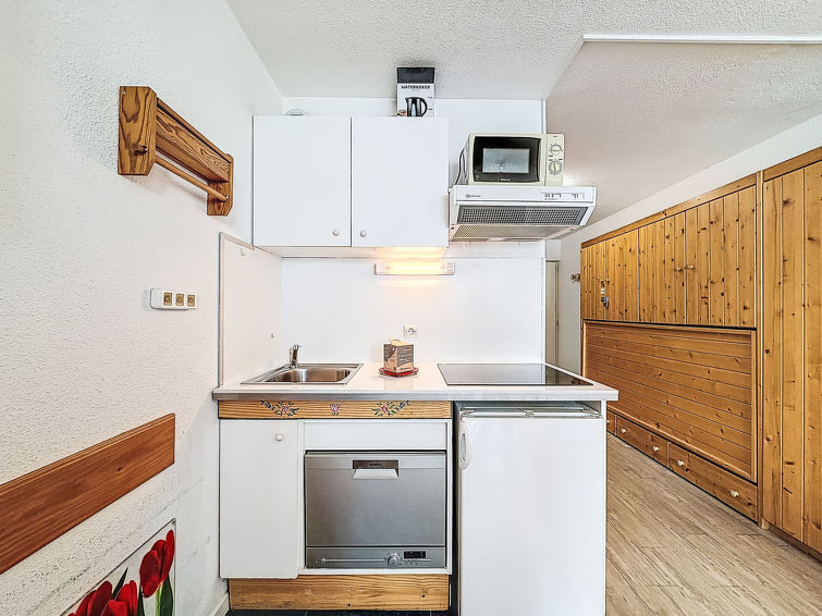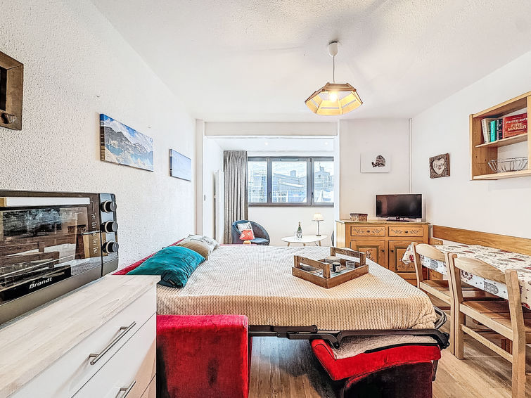 1 rom leilighet 24 m2 i 1st etasje. Praktiskt og vakkert møbler: stue/spisestue med, 1 uttrekkbar seng (2 pers. 2 x 80 cm), satelit-TV og flatskjerms TV. Alkove med forheng, uten vindu med, 1 x 2 køysenger (80 cm). Inngang med, 1 neddragbar klappseng (80 cm). Kjøkkenkrok (stekeovn, 3 induksjonskomfyr, mikrobølgeovn, elektrisk kaffemaskin). Bad, sep. WC. Balkong, beliggenhet mot sør-vest. Vakker utsikt av fjellene og skibakkene. Fasiliteter: Internett (trådløs LAN [WLAN], ekstra). Vennligst merk: røykvarsler.