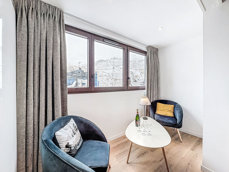 Tignes Val Claret: Leilighetshus "Plein Soleil (Val Claret)", med 5 etasjer. I anlegget: heis, skirom, sentralvarme. Supermarked, restaurant 50 m, innendørs pool 2.2 km. Idrettsenter 2 km, skisportenanlegg 50 m, skiskole for barn 200 m. Velkjente skiområder: TIGNES VAL D'ISERE 50 m. Vennligst merk: gratis skibuss. Det er flere lignende leiligheter i samme hus.