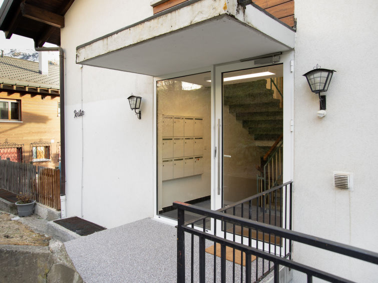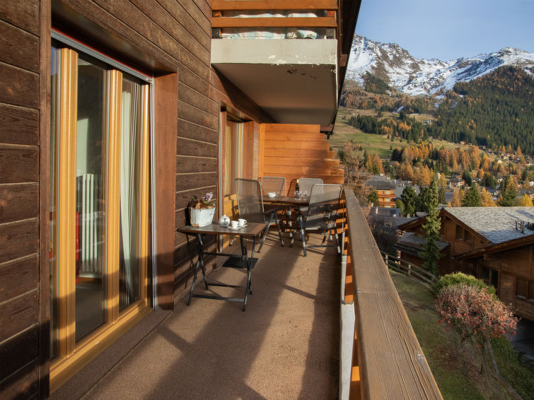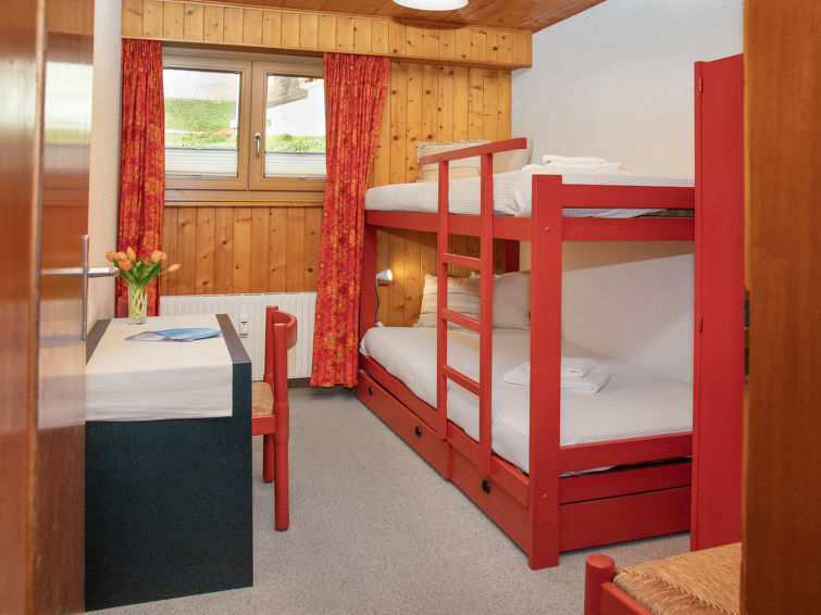 "Porthos 37", 4 rom leilighet 75 m2 i 2nd etasje, beliggenhet mot sør. Praktiskt møbler: stue/spisestue med, spisebord og kabel-TV. Utgang til balkongen, beliggenhet mot sør. 1 rom beliggenhet mot nord med, 1 x 2 køysenger (80 cm, lengde 190 cm). 1 stort rom beliggenhet mot sør med, 1 dobbeltseng (2 x 90 cm, lengde 190 cm). 1 litet rom beliggenhet mot vest med, 1 dobbeltseng (2 x 90 cm, lengde 190 cm). Utgang til balkongen, beliggenhet mot sør. Kjøkken (3 kokeplater, stekeovn, oppvaskmaskin, brødrister, vannkoker, mikrobølgeovn, raclettegrill (chinoise, ost)). Bad/WC, sep. WC. Stor balkong, beliggenhet mot sør. Balkongmøbler, liggestoler (4). Vakker panoramautsikt av fjellene og landskapet. Fasiliteter: hårføner. Internett (trådløs LAN [WLAN], gratis). Garasje plass nr 9 i 800 m, høyde 215 cm. Vennligst merk: røykfri bolig. Max kjæledyr / hund tillatt 1 kjæledyr / hund tillatt.