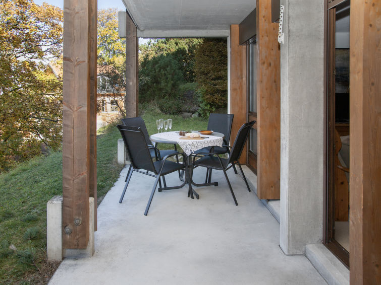 2 rom leilighet 43 m2, på bakkeplan. Komfortabelt og koseligt møbler: stue/spisestue med, 2 sovesoffaer (90 cm, lengde 200 cm), spisebord, kabel-TV, video, radio og CD-spiller. Utgang til terrassen. 1 rom med, 1 dobbeltseng (2 x 90 cm, lengde 200 cm). Kjøkkenkrok (2 kokeplater, brødrister, vannkoker, elektrisk kaffemaskin, Internet(Nespresso), ekstra, kombinert mikrobølgeovn). Dusj/WC. Terrasse, beliggenhet mot vest, liten hage. Terrassemøbler. Meget vakker utsikt av fjellene og dalen. Fasiliteter: hårføner. Internett (trådløs LAN [WLAN], gratis). Vennligst merk: røykfri bolig.