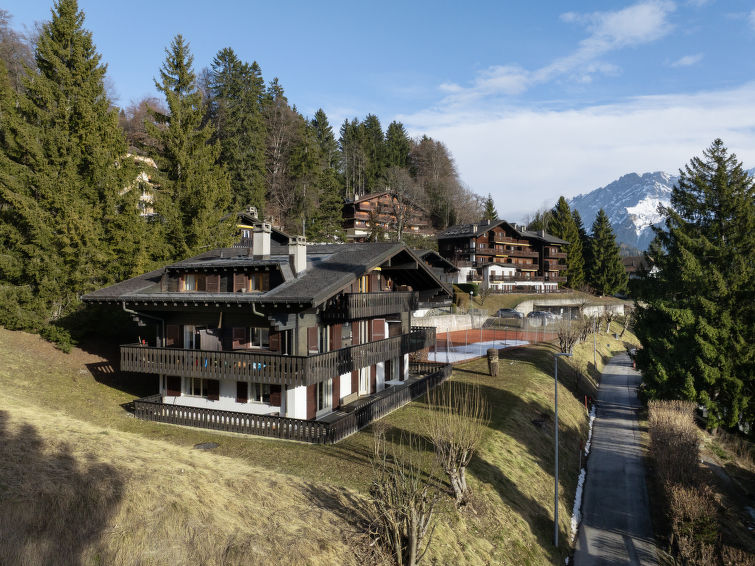 Koselig residens "Régina A, B, C, D". I utkanten, 900 m fra sentrum av Villars, i en solrikt posisjon, beliggenhet mot sør. Fellesbruk: tomt, innendørs pool (8 x 4 m, dybde 100- 140 cm dyp). Tennis. I huset: badstu (ekstra). Vaskemaskin, tørketrommel (for felles bruk ekstra). Romrengjøring 1 ukentlig på forespørsel (ekstra). Tilgang med bil hele veien til hbrukt. Felles garasje, offentlig parkering. Butikk 900 m, daglivarehandel 650 m, restaurant 250 m, bussholdeplass "Villars" 650 m, togstasjon "Arveyes" 400 m, termalbad "Lavey-les-bains" 19 km. Golfbane(18 hull) 8 km, tennisklubb 2.3 km, idrettsenter 2.3 km, fjellheis 800 m, gondolheis 2.4 km, skibussholdeplass 20 m, skiskole 900 m, skiskole for barn 2.3 km, skøytebane 1.4 km. Vennligst merk: gratis skibuss. Det er flere lignende leiligheter i samme hus.