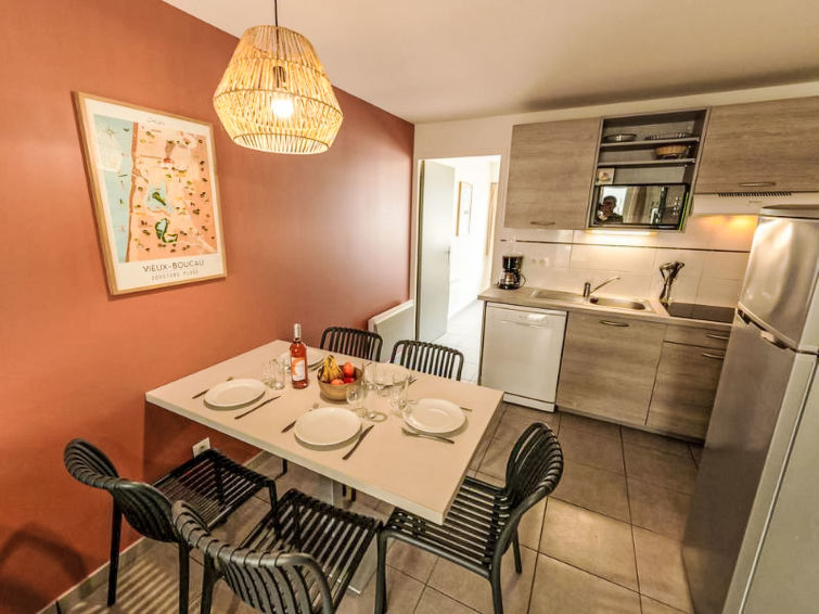 Residens "Lagocéan", med 3 etasjer, renovert i 2024. 29 leiligheter i residensen. 800 m fra sentrum av Vieux-Boucau, 10 km fra sentrum av Soustons, 300 m fra sjøen, 750 m fra innsjø. Frokost muligt (ekstra). Offentlig parkering på veien. Butikk 100 m, supermarked 2.5 km, sandstrand 300 m, badevann "Lac Marin de Port d'Albret" 750 m. Golfbane(18 hull) 10 km, tennis 500 m. Eieren godtar ikke noen ungdomsgrupper. Vennligst merk: Bildet er et eksempel. Feriehuset kan variere i stue, planløsning, utstyr og møbler.