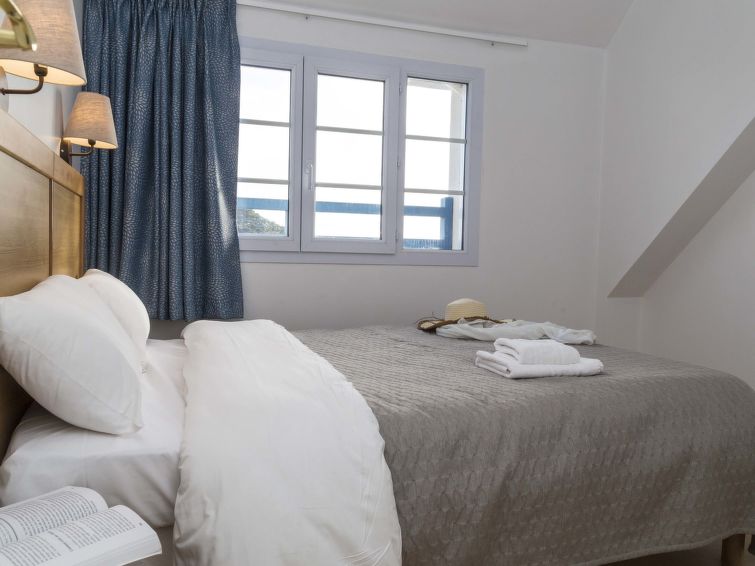 2 rom leilighet 27 til 39 m2. Vakkert møbler: stue/spisestue med, 1 uttrekkbar seng (2 pers.), muligt å leie TV. Utgang til terrassen. 1 rom med, 2 sovemuligheter. Kjøkkenkrok (oppvaskmaskin, 2 keramiske kokeplater, mikrobølgeovn, elektrisk kaffemaskin). Dusj/WC. Oppvarming. Liten terrasse. Terrassemøbler. Utsikt av havet. Fasiliteter: barneseng for barn opp til 3 år (ekstra). Internett (trådløs LAN [WLAN], ekstra). Parkeringsplass. Velegnet for familier. Max kjæledyr / hund tillatt 1 kjæledyr / hund tillatt.