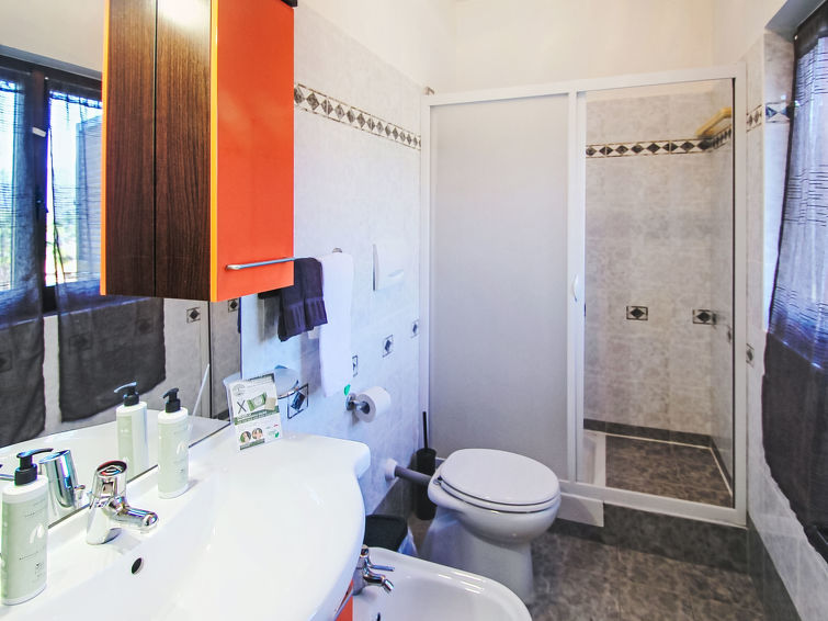 Ferieanlegg "Residenza Agrifoglio". 17 leiligheter på eiendommen. 2 km fra sentrum av Luino, i en solrikt, høyt posisjon, 3 km fra innsjø, i en blindvei. Fellesbruk: tomt (inngjerdet) med plen og trær, 1 badebasseng (12 x 5 m, dybde 140 cm dyp, Sesongåpent: 01.Mai. - 30.Sep. bassengets åpningstider: 09:00-20:00). Utendørs dusj, bordtennis, volleyball bane, grill, lekeplass. I huset: vaskemaskin (for felles bruk ekstra), oppvarming kun tilgjengelig fra 08.Okt. - 26.Apr.. 50 m lang bratt Tilgang med bil hele veien til hbrukt. Parkering på tomten. El-ladestasjon. Butikk 2 km, supermarked 2 km, restaurant 1.5 km, bar 1.5 km, togstasjon "Luino" 3 km, stenstrand "Le Serenelle" 3 km, innendørs pool 400 m. Tennis 400 m. Attraksjoner i nærheten: Maccagno 12 km, Laveno 20 km. Vennligst merk: bil anbefales ingen heis. Bygning med elektriske portener. Dyr i nabolaget. The residence comprises of 15 apartments. On request and extra cost: mooring. Please note: babies and children must be included in the total number of guests for each property. 1 parking space only per apartment.