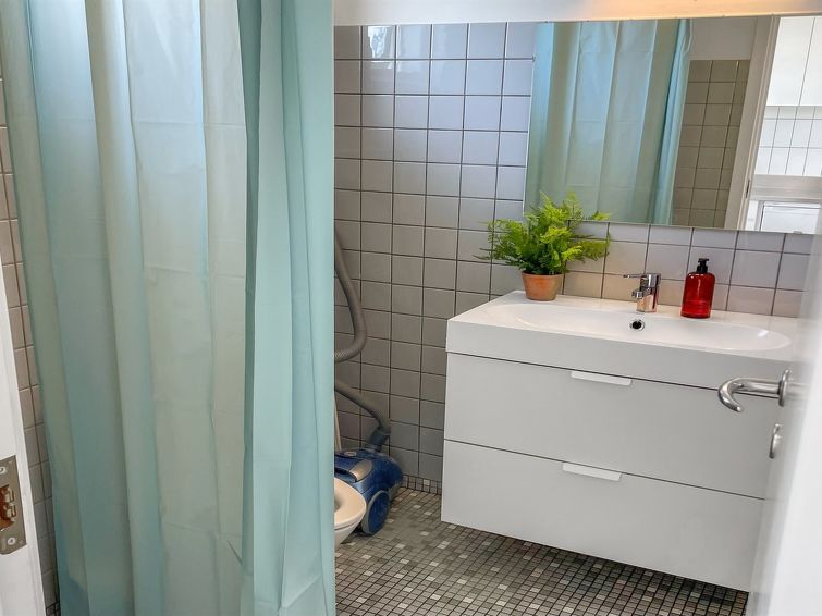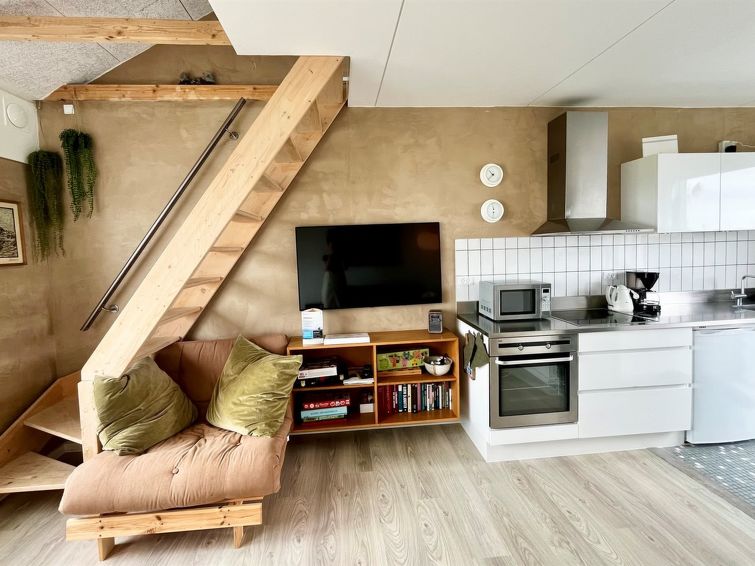 "Roger" - 400m from the sea in Bornholm", leilighet 34 m2. Passer for 4 voksne. Åpen stue galleri med 2 senger, 2 sovesoffaer, TV og radio. Kjøkken (stekeovn, 4 keramiske kokeplater, mikrobølgeovn). Dusj/WC. Grill. Utsikt av havet. Fasiliteter: vaskemaskin, høy barnestol barneseng (ekstra). Internett (trådløs LAN [WLAN]). Parkeringsplass ved hbrukt. Vennligst merk: røykfri bolig. Max kjæledyr / hund tillatt 1 kjæledyr / hund tillatt.
