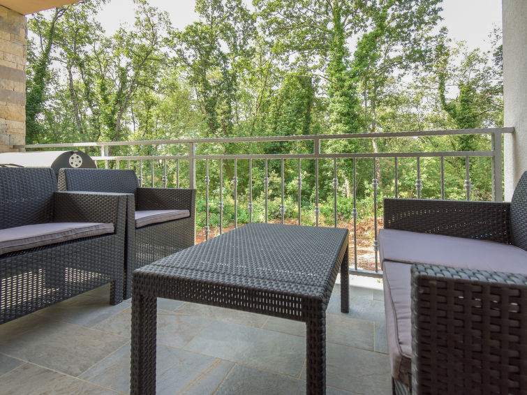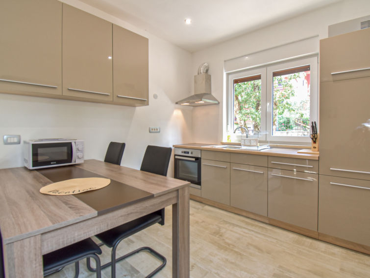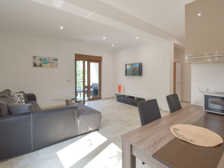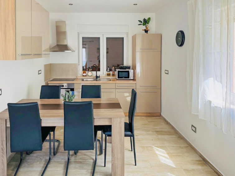 4 rom leilighet 80 m2, på bakkeplan. Koseligt møbler: stue/spisestue 25 m2 med, satelit-TV (flatskjerms TV), air-conditioning. Utgang til terrassen. 1 rom med 1 seng (90 cm lengde 200 cm), 1 dobbeltseng (140 cm, lengde 200 cm). 1 rom med, 1 dobbeltseng (160 cm, lengde 200 cm). 1 rom med 1 seng (90 cm lengde 200 cm). Åpent kjøkken (ovn, 4 keramiske kokeplater, mikrobølgeovn, frys, elektrisk kaffemaskin). Dusj/WC. Terrasse 8 m2, dekt. Terrassemøbler. Utsikt av hagen. Fasiliteter: vaskemaskin, hårføner. Internett (trådløs LAN [WLAN], gratis).