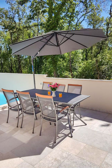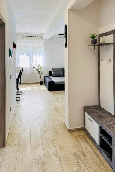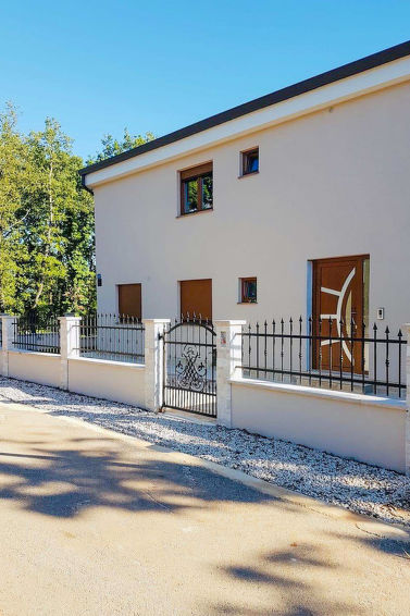 Tomannsbolig "Romina", bygget i 2018. I det lille tettstedet Barboj 5 km fra sentrum av Umag, i en roligt, solrikt posisjon, 1.5 km fra sjøen, 1.5 km fra stranden, i en blindvei. Fellesbruk: tomt 200 m2, hage med plen. Grill. I hbrukt: internetilkobbling. Overdekket, parkering ved hbrukt på tomten. Butikk 1 km, supermarked 5 km, restaurant 1 km, småstenstrand 1.5 km, strand ved klipper 1.5 km, offentlig badeområde 1.5 km. Golfbane 1.5 km, tennis 1.5 km, turstier fra hbrukt 150 m, sykkelvei 200 m.