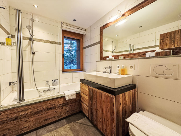 Fin, komfortabel, luksuriøs hytte "Rütschi", med 5 etasjer, bygget i 2008. 7 leiligheter på eiendommen. I området Steinmatte, 500 m fra sentrum, i en roligt posisjon, beliggenhet mot sør. I huset: trådløst LAN [WLAN], badstu, dampbad, spaområde, heis, sykkelrom, skirom, sentralvarme. Daglivarehandel 100 m, supermarked 550 m, restaurant, bakeri 100 m.minutters gange til sentrum 8, bussholdeplass "Kirchbrücke" 100 m, togstasjon "Bahnhof Zermatt" 900 m. Fjellheis 700 m, skiutleie 100 m, skibussholdeplass 150 m, skiskole, skiskole for barn 500 m. Vennligst merk: babyutstyr på forespørsel. Nøkkelleveringen skjer i Interhome i Zermatt. Det er flere lignende leiligheter i samme hus.