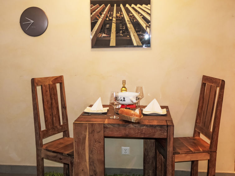 1 rom leilighet 39 m2, på bakkeplan. Komfortabelt og luksuriøst møbler: åpen stue/soverom med, 1 dobbeltseng, spisebord, TV, radio, CD-spiller og DVD. Utgang til terrassen. Åpent kjøkken (stekeovn, oppvaskmaskin, 4 induksjonskomfyr, brødrister, vannkoker, frys, elektrisk kaffemaskin, Internet(Nespresso), ekstra (ost)). Bad/WC, boblebad. Liten terrasse. Terrassemøbler. Fasiliteter: safe, hårføner. Internett (trådløs LAN [WLAN], gratis). Vennligst merk: røykfri bolig. Keine Haustiere.