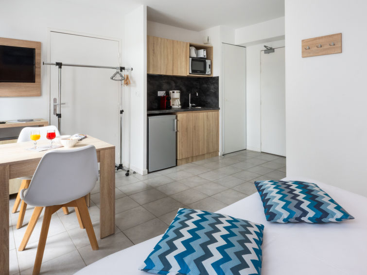 "Rêve d'Ile", 1 rom etromsleilighet 24 til 27 m2. Lys, praktiskt møbler: stue/soverom med 1 seng, 1 uttrekkbar seng, spisebord og TV. Lite, åpent kjøkken (oppvaskmaskin, 2 keramiske kokeplater, brødrister, vannkoker, mikrobølgeovn, elektrisk kaffemaskin). Badekar/WC eller dusj/WC. El-oppvarming. Balkong, eller terrasse. Terrassemøbler, balkongmøbler. Fasiliteter: høy barnestol barneseng. Internett (trådløs LAN [WLAN], gratis). Vennligst merk: røykfri bolig. Max kjæledyr/små hunder tillatt 2 kjæledyr/små hunder tillatt. Røykvarsler, brannslukkningsapparat. Eiendommen tilhører en type eiendom eller leilighet.