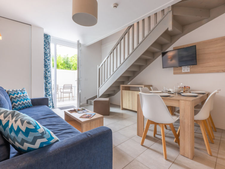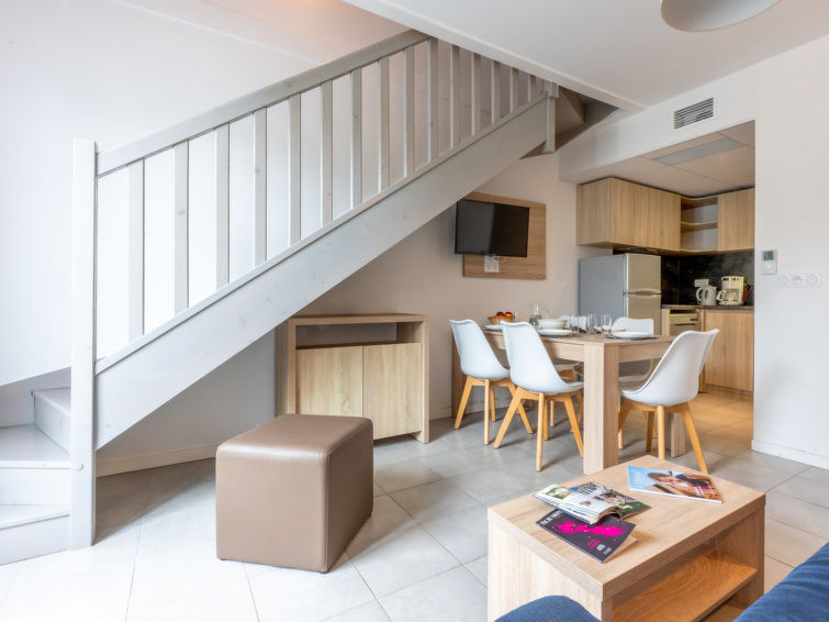 Resort "Rêve d'Ile", bygget i 2018. 87 leiligheter i residensen. 150 m fra sentrum av Rivedoux, 3.5 km fra sentrum av Sainte-Marie-en-Ré, 14 km fra sentrum av La Rochelle, 300 m fra sjøen. Fellesbruk: tomt 4'000 m2 med planter og trær, 1 badebasseng oppvarmt, inngjerdet (15 x 7 m, dybde 160 cm dyp, Sesongåpent: 15.Apr. - 15.Sep.). Barnebasseng, terrasse. I anlegget: resepsjon, frokostrom, badstu (ekstra). Treningsrom (ekstra). Dampbad (ekstra). Bordtennis, sykkelrom, vaskemaskin, tørketrommel (for felles bruk ekstra), sykkelutleie. Frokost muligt (ekstra). Gangsti til hbrukt. Parkering på tomten. Butikk, restaurant 300 m. Vennligst merk: bilfritt ferieområde. Bildet er et eksempel. Feriehuset kan variere i stue, planløsning, utstyr og møbler.