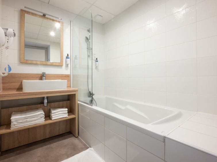 "Rêve d'Ile", 3 rom leilighet 51 til 55 m2. Lys, praktiskt møbler: stue/soverom med 1 seng, 1 uttrekkbar seng, spisebord og TV. Utgang til terrassen. 1 rom med, 1 dobbeltseng (160 cm, lengde 190 cm), bad/WC. 1 rom med 2 senger (80 cm lengde 190 cm). Lite, åpent kjøkken (oppvaskmaskin, 4 keramiske kokeplater, brødrister, vannkoker, mikrobølgeovn, frys, elektrisk kaffemaskin). Badekar/WC eller dusj/WC. Oppvarming. Terrasse. Terrassemøbler. Fasiliteter: høy barnestol barneseng, hårføner. Internett (trådløs LAN [WLAN], gratis). Vennligst merk: røykfri bolig. Max kjæledyr/små hunder tillatt 2 kjæledyr/små hunder tillatt. Røykvarsler, brannslukkningsapparat. Eiendommen tilhører en type eiendom eller leilighet.
