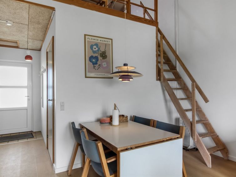 "Salka" - 150m from the sea in NW Jutland", 2 rom leilighet 63 m2. Passer for 4 voksne. Stue med, TV, radio, CD-spiller og DVD. 1 rom med, 1 dobbeltseng. Kjøkken (2 kokeplater, frys). Dusj/WC. øverste etasje: åpen galleri med 2 senger. Terrasse 4 m2. Utsikt av havet. Fasiliteter: Internett (trådløs LAN [WLAN]). Parkeringsplass ved hbrukt. Max kjæledyr / hund tillatt 1 kjæledyr / hund tillatt.