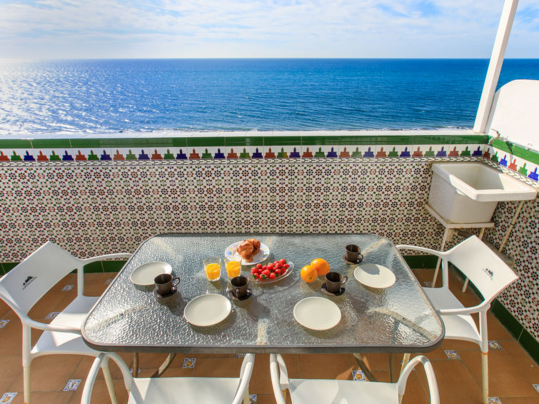 Rincón de la Victoria: Leilighetshus "San Luis Playa", med 5 etasjer. I sentrum av Rincón de la Victoria, i en sentrale, solrikt posisjon, 10 m fra sjøen, beliggenhet mot sør. I huset: trådløst LAN [WLAN], heis, sentralvarme, airconditioning, vaskemaskin. Trapper (7 trinn) til hbrukt. Offentlig parkeringshus på 100 m, offentlig parkering på veien. Butikk 30 m, supermarked 100 m, restaurant, bar 50 m, bakeri 80 m, café 40 m, område bare for gående, sykkelutleie, ølservering 50 m, bussholdeplass "walking distance" 90 m, sandstrand "walking distance" 50 m. Golfbane(18 hull) 4 km, lekeplass 80 m. Vennligst merk: babyutstyr på forespørsel (ekstra).