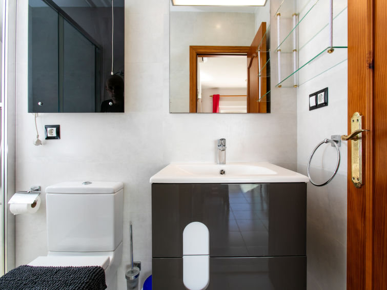 "San Luis Playa", 3 rom leilighet 60 m2, i toppetasjen, beliggenhet mot sør. Praktiskt møbler: stue 16 m2 med, bar, digital TV og air-conditioning. Utgang til terrassen, beliggenhet mot sør. 1 rom med, 1 dobbeltseng (135 cm). Utgang til terrassen, beliggenhet mot nord. 1 rom med skråtak med 2 senger (90 cm). Åpent kjøkken (4 kokeplater, stekeovn, X keramiske kokeplater, frys). Dusj/WC, sep. WC. Terrasse 12 m2, beliggenhet mot sør terrasse 6 m2, beliggenhet mot nord. Terrassemøbler. Meget vakker utsikt av havet. Fasiliteter: vaskemaskin. Internett (trådløs LAN [WLAN], gratis). Vennligst merk: velegnet for familier. Ingen parkeringsplass. Kjæledyr / hund tillatt 1 kjæledyr / hund tillatt. Bare TV ES. VFT/MA/10237