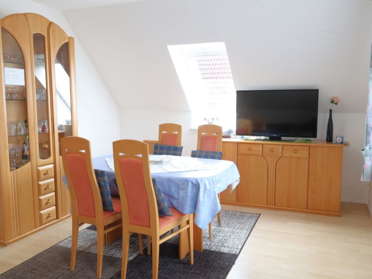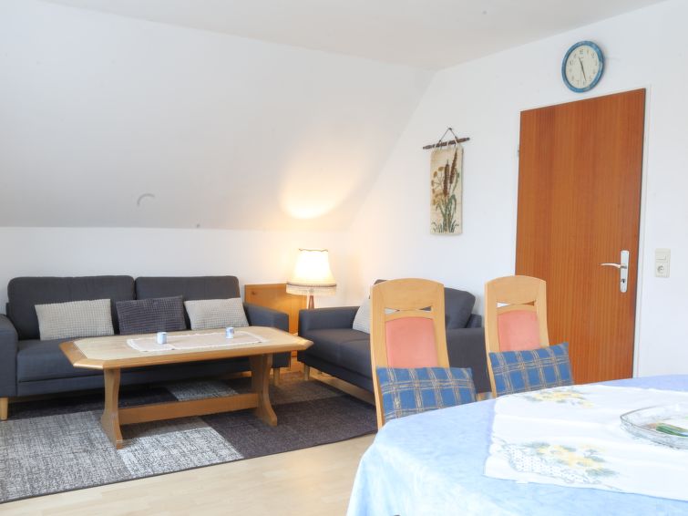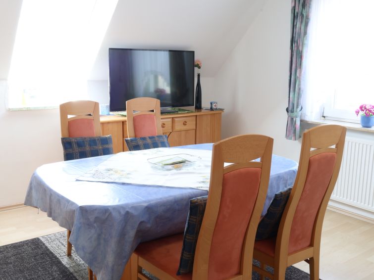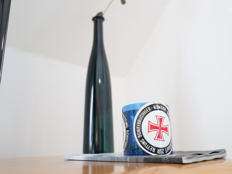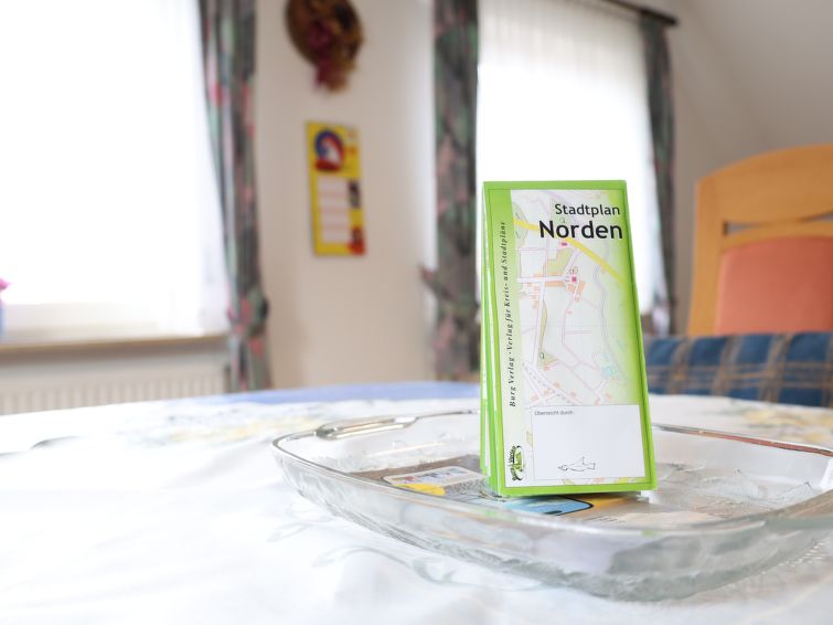 Tomannsbolig "Schonerweg". I området, 500 m fra sentrum, i en roligt posisjon, 1.3 km fra sjøen, 1.9 km fra stranden, i en blindvei. Fellesbruk: velholdt hage. Privat: sitteplass. I huset: sentralvarme. Parkering ved hbrukt. Supermarked 1.2 km, restaurant, bakeri 800 m, café 1 km, bussholdeplass 500 m, togstasjon "Norddeich" 2 km, ferje 2 km, sandstrand 1.9 km, utendørs svømmebasseng 14 km, innendørs pool 850 m. Golfbane(9 hull) 8 km, surfeskole 1 km, tennis 1.8 km, rideskole 1.8 km.
