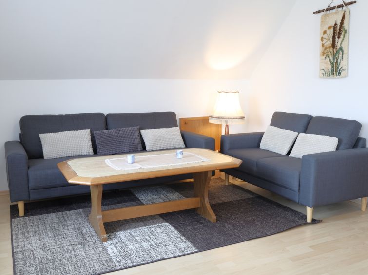 3 rom leilighet 60 m2, i øvre etasje. Vakkert møbler: stue/spisestue 20 m2, med skråtak med, satelit-TV og stereoanlegg. 1 rom 15 m2, med skråtak med, 1 dobbeltseng (2 x 100 cm, lengde 200 cm). 1 rom 13 m2, med skråtak med, 1 dobbeltseng (2 x 100 cm, lengde 200 cm). Kjøkken 8 m2 (stekeovn, mikrobølgeovn, elektrisk kaffemaskin). Dusj/WC. Fasiliteter: høy barnestol. Internett (trådløs LAN [WLAN], gratis). Vennligst merk: røykfri bolig. Røykvarsler.