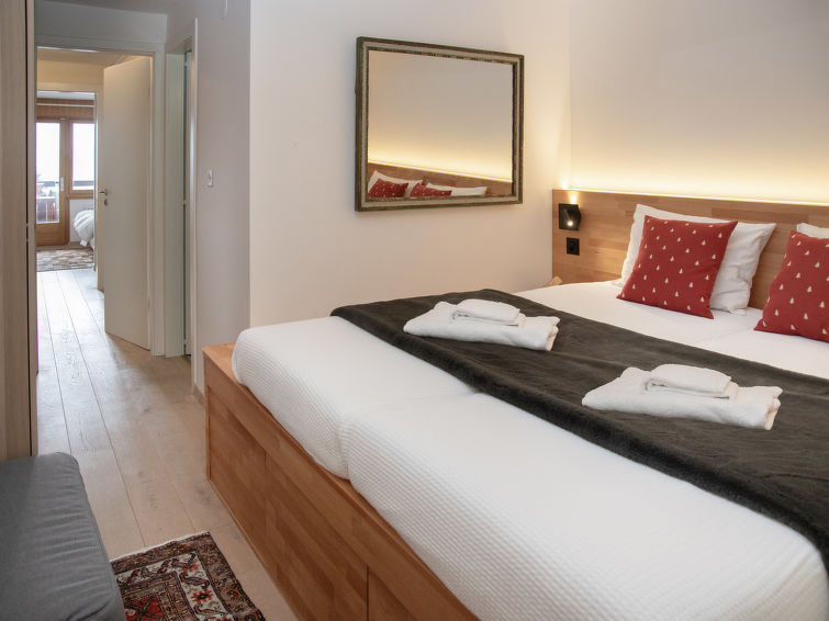"Schuss 23", 3 rom leilighet 77 m2 i 2nd etasje, beliggenhet mot sør. Delvis renovert i 2020, komfortabelt og vakkert møbler: stue/spisestue med, TV. Utgang til balkongen, beliggenhet mot sør. 1 rom med Garderobe med, 1 dobbeltseng (1 x 180 cm, lengde 200 cm). Utgang til balkongen, beliggenhet mot sør. 1 rom med, 1 dobbeltseng (1 x 160 cm, lengde 200 cm), dusj/WC. Utgang til balkongen, beliggenhet mot nord. Kjøkken (stekeovn, oppvaskmaskin, 4 keramiske kokeplater, mikrobølgeovn, raclettegrill). Utgang til balkongen, beliggenhet mot nord. Bad/WC. Stor balkong, beliggenhet mot sør, liten balkong, beliggenhet mot nord. Terrassemøbler. Meget vakker panoramautsikt av fjellene. Fasiliteter: vaskemaskin, tørketrommel, hårføner. Internett (trådløs LAN [WLAN], gratis). Garasje plass nr 10. Vennligst merk: røykfri bolig.