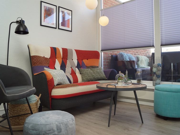 "Seppe" - 500m from the sea in NW Jutland", 1 rom leilighet 58 m2. Passer for 4 voksne. Stue med, TV og radio. Åpen galleri, 1 rom med, 1 dobbeltseng. Åpen galleri med, 1 dobbeltseng. Kjøkken (stekeovn, oppvaskmaskin, 4 keramiske kokeplater, mikrobølgeovn, frys). Dusj/WC. øverste etasje: 1 rom. Terrasse 6 m2. Fasiliteter: vaskemaskin. Internett (trådløs LAN [WLAN]). Parkeringsplass ved hbrukt. Vennligst merk: røykfri bolig.