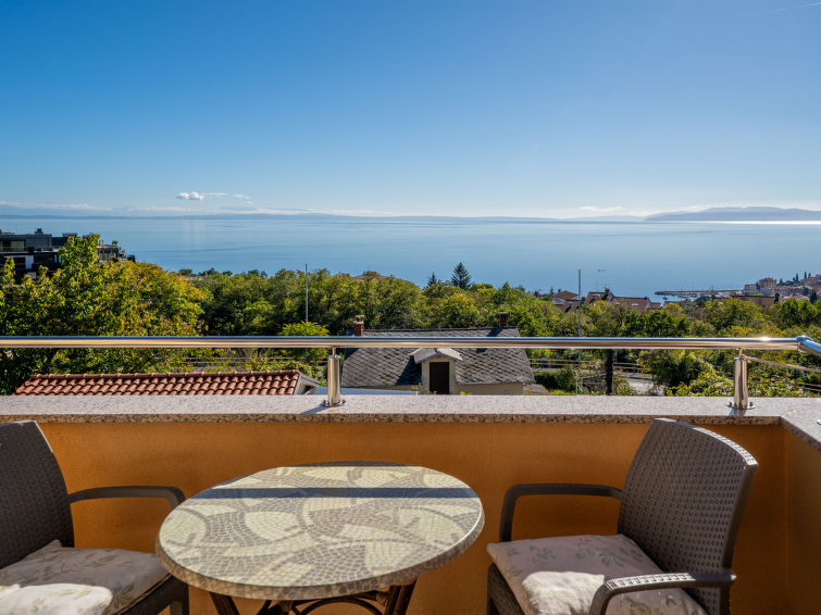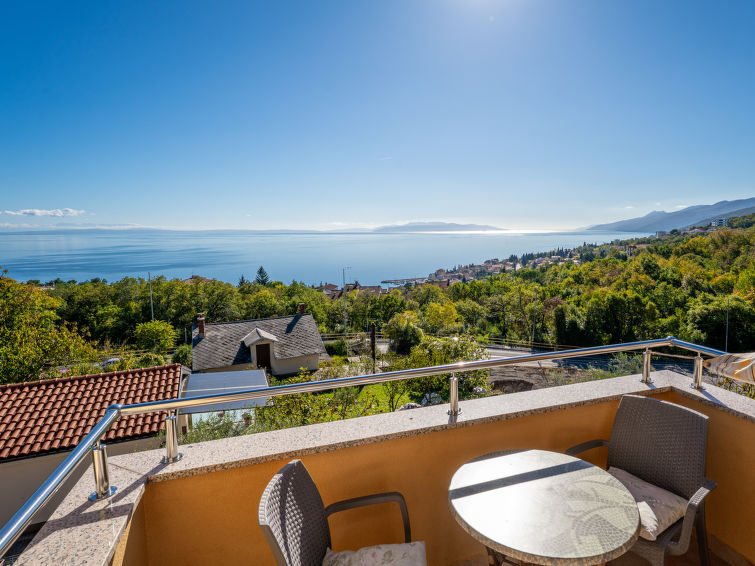 Fin flermannsbolig "Silvana". Ovenfor Opatija 2.5 km fra sentrum av Opatija, i en solrikt, høyt posisjon, 750 m fra sjøen, 750 m fra stranden, i en blindvei, i det grønne, beliggenhet mot sør. Fellesbruk: tomt 900 m2, hage 70 m2. I huset: internetilkobbling. Parkering ved hbrukt på tomten. Butikk 350 m, supermarked 1.7 km, restaurant 80 m, småstenstrand, betonglagt strand 750 m. Tennis 3 km. Vennligst merk: objektnummer HR3100.145.1 ligger på samme tomt.