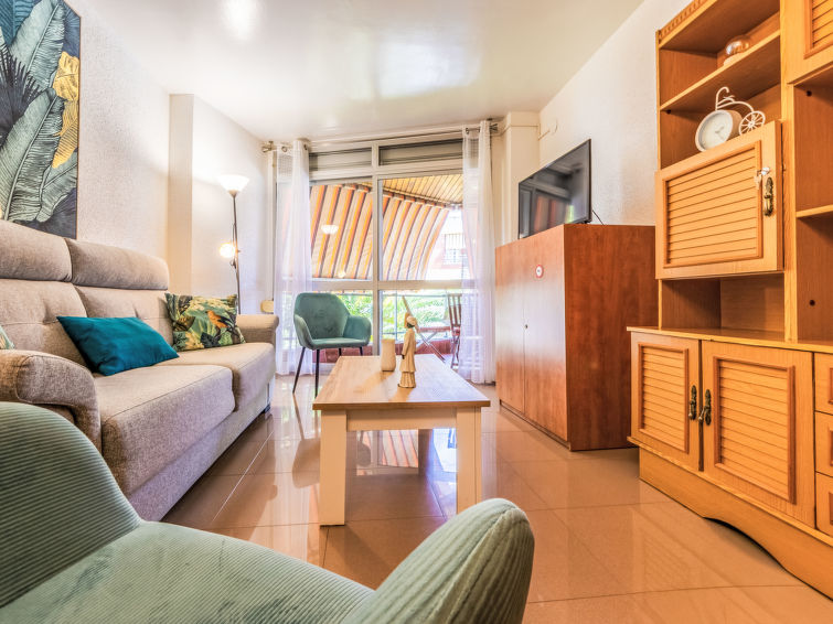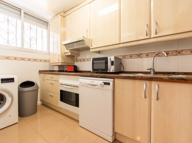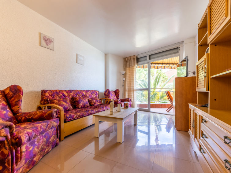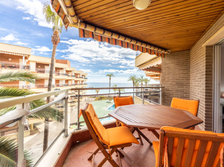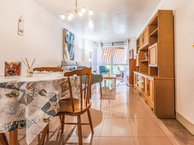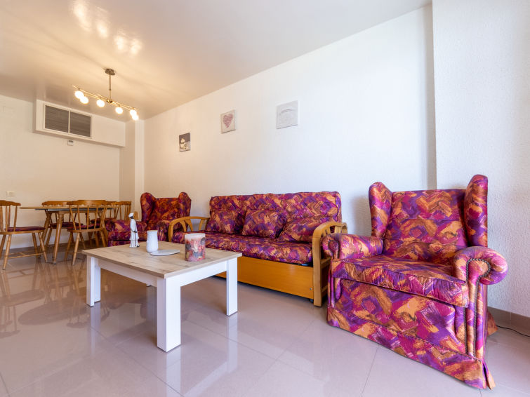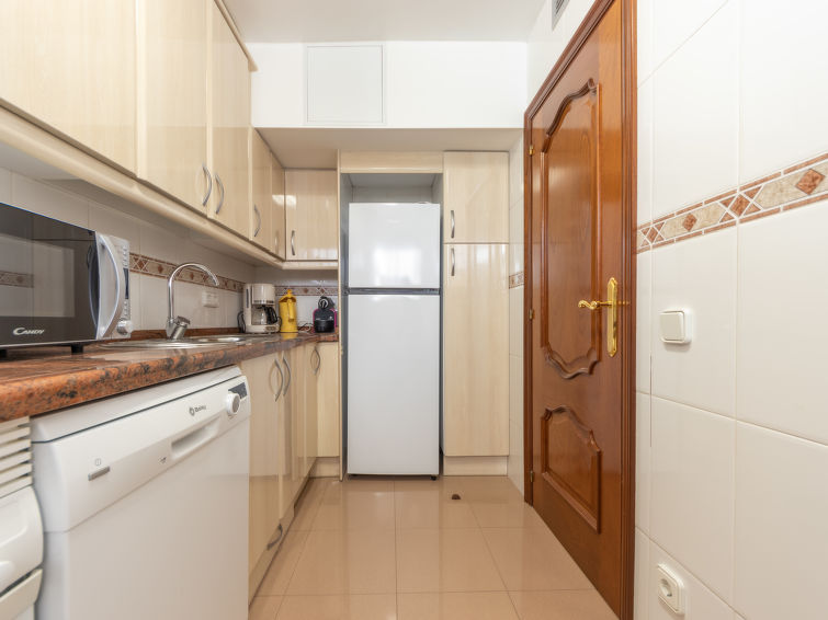 "Sol España", 3 rom leilighet 53 m2 i 3rd etasje. Praktiskt møbler: stue/spisestue med etasjer med, satelit-TV. Utgang til terrassen. 1 rom med, 1 dobbeltseng (160 cm, lengde 190 cm). Utgang til terrassen. 1 rom med 2 senger (90 cm lengde 190 cm). Utgang til terrassen. Kjøkken (stekeovn, oppvaskmaskin, 4 keramiske kokeplater, brødrister, vannkoker, mikrobølgeovn). Dusj/WC. Airconditioning, varmluftsoppvarming. Terrasse. Terrassemøbler, liggestoler. Utsikt av havet. Fasiliteter: vaskemaskin, strykejern, hårføner. Internett (trådløs LAN [WLAN], gratis). Parkeringsplass (overdekt). Vennligst merk: bare TV FR, ES. HUTT-059788