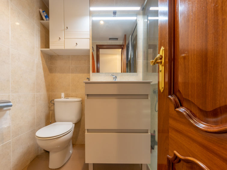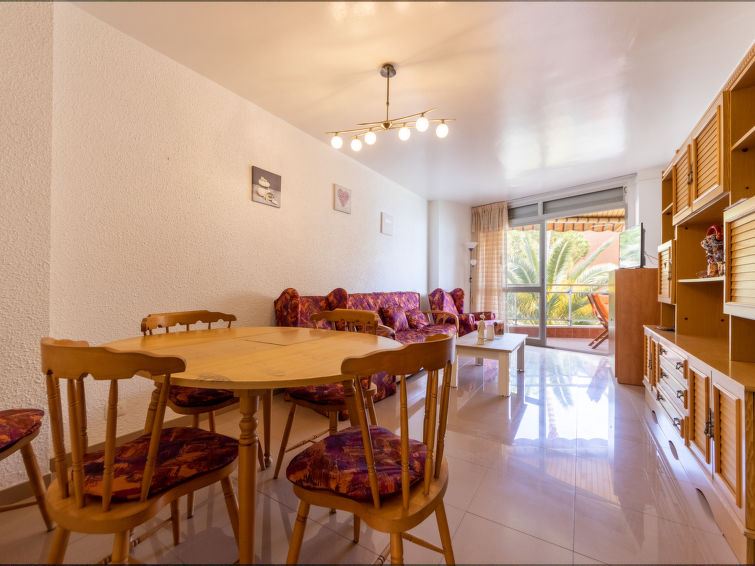 Cambrils: Koselig leilighetshus "Sol España". 50 m fra sjøen, 50 m fra stranden, direkte tilgang til stranden. Fellesbruk: 1 badebasseng (15 x 5 m, dybde 50- 200 cm dyp, Sesongåpent: 15.Jun. - 15.Sep.). Barnebasseng. I huset: heis. Overdekket, parkering. Butikk 50 m, restaurant, bar 150 m, bussholdeplass 50 m. Golfbane 3 km. Attraksjoner i nærheten: Parque temático PORTAVENTURA 10 km, Parque aquático AQUOPOLIS 15 km, Spa AQUUM 15 km, Karting 12 km, Paintball 18 km. Eieren godtar ikke noen ungdomsgrupper.