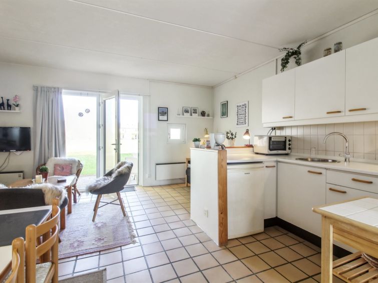 "Solveg" - 150m from the sea in NW Jutland", 2 rom leilighet 45 m2. Passer for 4 voksne. Stue med, 1 dobbel sovesoffa, TV, radio og CD-spiller. 1 rom med, 1 dobbeltseng. Kjøkken (2 kokeplater, frys). Dusj/WC. Terrasse 4 m2, dekt. Utsikt av havet. Fasiliteter: Internett (trådløs LAN [WLAN]). Parkeringsplass ved hbrukt. Vennligst merk: røykfri bolig.