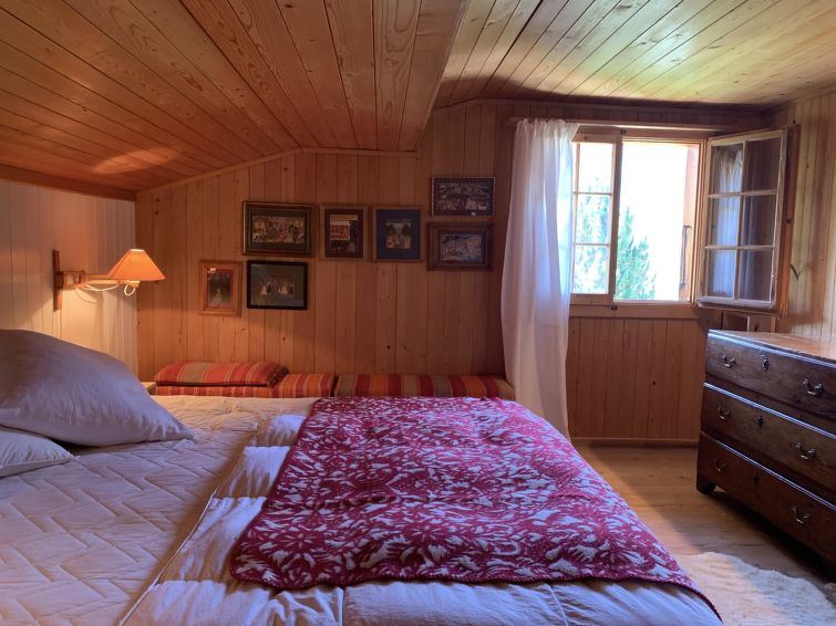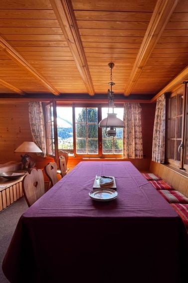 Large dining-living room, table for 8, fire place, stereo, kitchen with dishwasher, oven, fridge and freezer, coffee machine (Nespresso), 3 double rooms with queen size bed (180 x 200 cm), 1 double room with single beds and 2 more trundle beds (total 4), 1 extra room to keep for the property. 2 bathrooms. 1 cellar with washing machine, dryer machine, freezer, shelves, etc. 2 exterior, not cover parking places. Balcony on the first floor with tables. The two parking spaces are next to the garage and are labeled. Please do not park under the roof of the garage, as the garage must be accessible to the owners of the apartments at all times and the garage door can be opened. If you need another parking space, you can park your third car in the village in the public car park "Brüggmatte", which is free of charge in summer and subject to a charge in winter. Public transport included in the Simmental and Saanenland with the SIMMENTAL CARD: Overnight guests in the Lenk-Simmental holiday region travel free of charge on public transport for excursions with a valid guest card.