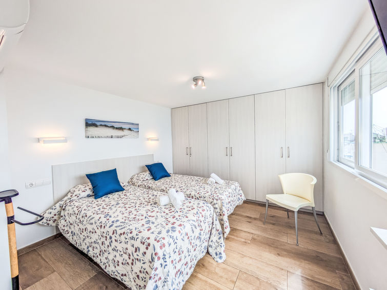 "Suecia", 4 rom takleilighet i 6th etasje, østvendt beliggenhet. Passer for 6 voksne. Romlig og lys, fullstendig renovert i 2020, praktiskt og komfortabelt møbler: stue/spisestue 23 m2 med, digital TV. Utgang til terrassen. 1 rom 7 m2 med, 1 dobbeltseng (150 cm, lengde 190 cm), air-conditioning og varmluft oppvarming. 1 rom 9 m2 med 2 senger (90 cm lengde 190 cm), dusj/WC, air-conditioning og varmluft oppvarming. Utgang til terrassen. 1 rom 9 m2 med 2 senger (90 cm lengde 190 cm), air-conditioning og varmluft oppvarming. Kjøkkenkrok (stekeovn, oppvaskmaskin, 3 induksjonskomfyr, brødrister, vannkoker, mikrobølgeovn, frys, elektrisk kaffemaskin). Dusj/bidé/WC. Airconditioning, vannkoker (80 liter). Stor terrasse 30 m2. Terrassemøbler, liggestoler. Utsikt av havet og byen. Fasiliteter: vaskemaskin, strykejern, hårføner. Internett (trådløs LAN [WLAN], gratis). Parkeringsplass plass nr Calle Maravall,pk 19. VT-321838-BM