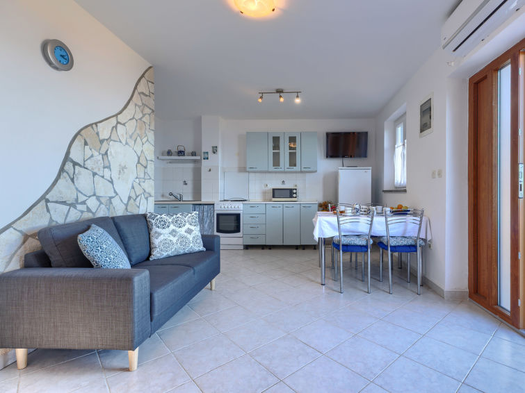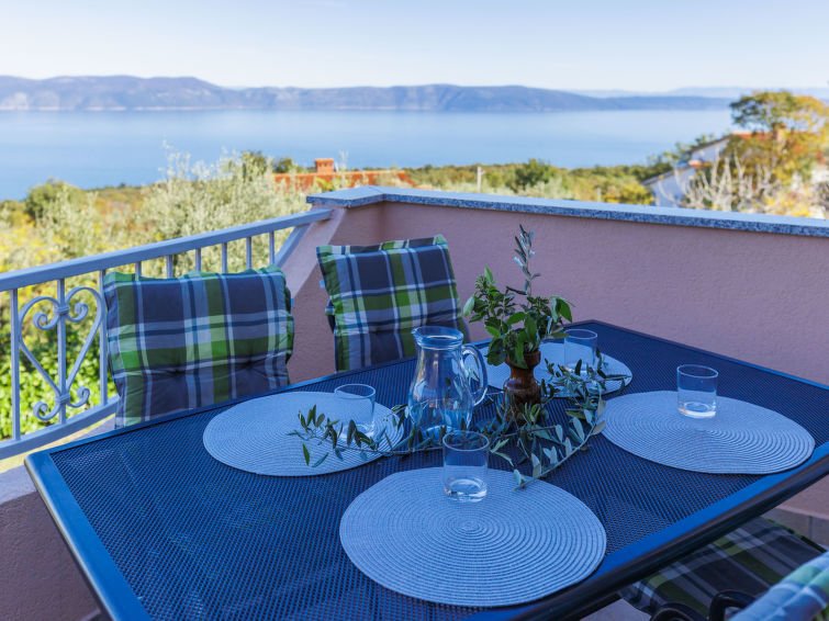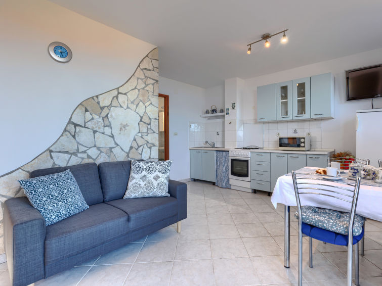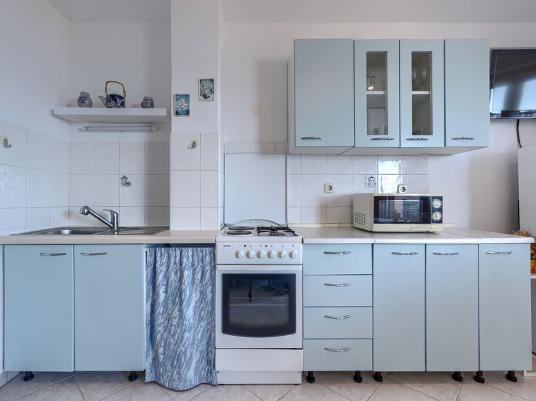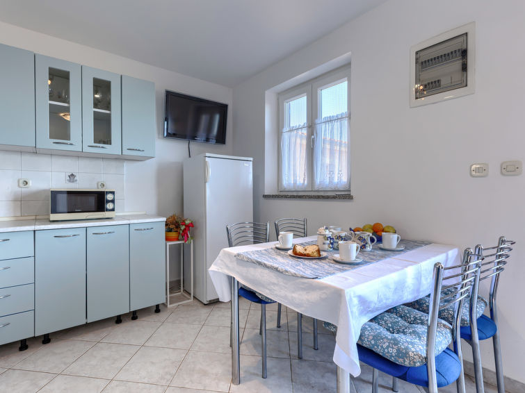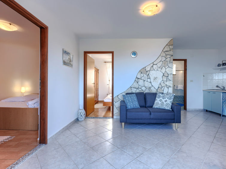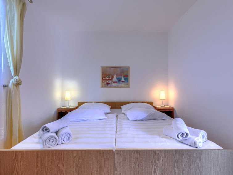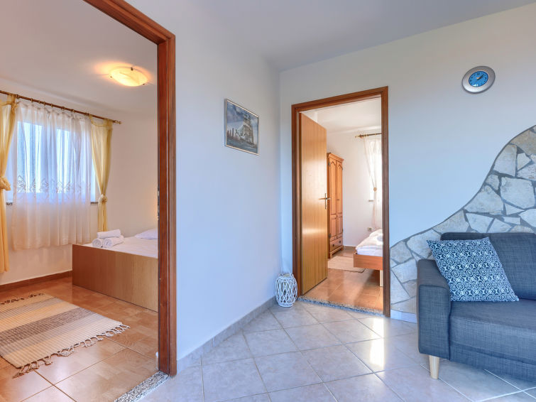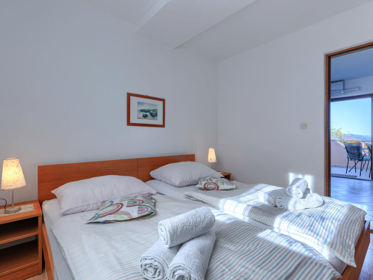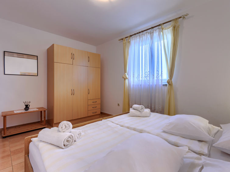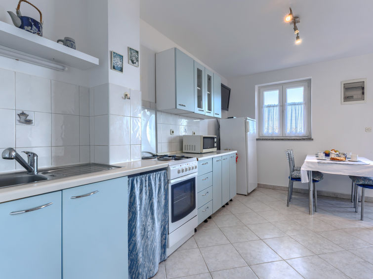 "Teo (LBN154)", 3 rom leilighet 56 m2 i 1st etasje. Stue/spisestue med, satelit-TV og air-conditioning. Utgang til terrassen. 2 rom, hvert rom med 2 senger. Åpent kjøkken (4 kokeplater, stekeovn, brødrister, vannkoker, mikrobølgeovn, frys, elektrisk kaffemaskin). Dusj/WC. Oppvarmingsalternativ. Terrasse 15 m2. Terrassemøbler, liggestoler (2). Utsikt av havet. Fasiliteter: Internett (trådløs LAN [WLAN], gratis). Vennligst merk: røykfritt hus.