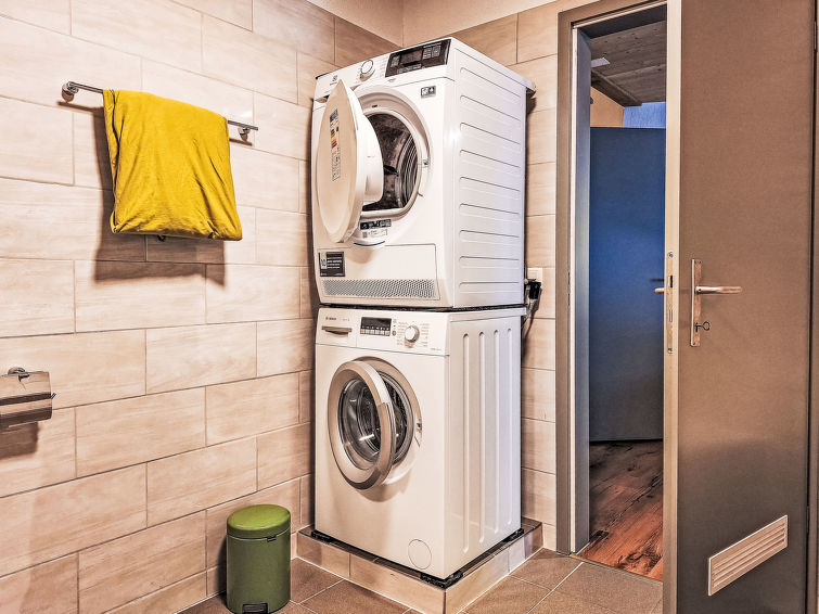 "Tilia", 2 rom leilighet 53 m2, på bakkeplan, beliggenhet mot sør. Romlig, komfortabelt og koseligt møbler: åpen stue/spisestue med, spisebord, kabel-TV og radio. Utgang til terrassen. 1 stort rom med 1 seng (90 cm lengde 200 cm), 1 dobbeltseng (180 cm, lengde 200 cm), motoriserte persienner. Åpent kjøkken (stekeovn, oppvaskmaskin, 4 keramiske kokeplater, brødrister, vannkoker, mikrobølgeovn, elektrisk kaffemaskin, Internet(Nespresso), ekstra, raclettegrill (ost)). Bad/dusj/WC. Varmekabler i gulvet. Terrasse, beliggenhet mot sør. Terrassemøbler. Delvis utsikt av fjellene. Fasiliteter: vaskemaskin. Internett (trådløs LAN [WLAN], gratis). Parkeringsplass (1 Bil) ved hbrukt. Vennligst merk: røykfri bolig. Røykvarsler, brannslukkningsapparat.